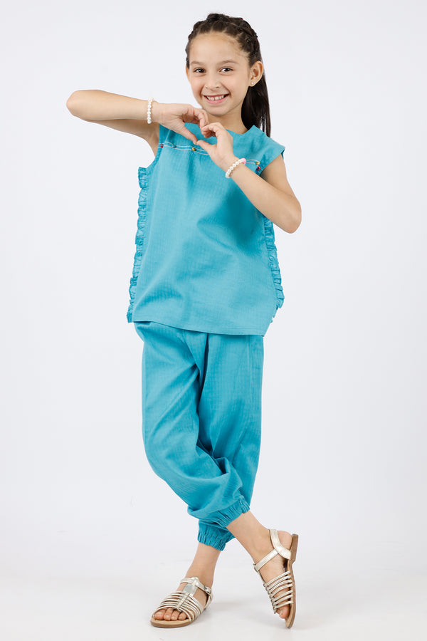Design: SP-9353 (P29-24115-03A 2Pcs) S+T Color: Mint Green Fabric: Cotton Jacquard Product Detail Introducing Saya's Stitched Cotton Jacquard Shirt and Trouser Set for Kids, designed to provide both comfort and...