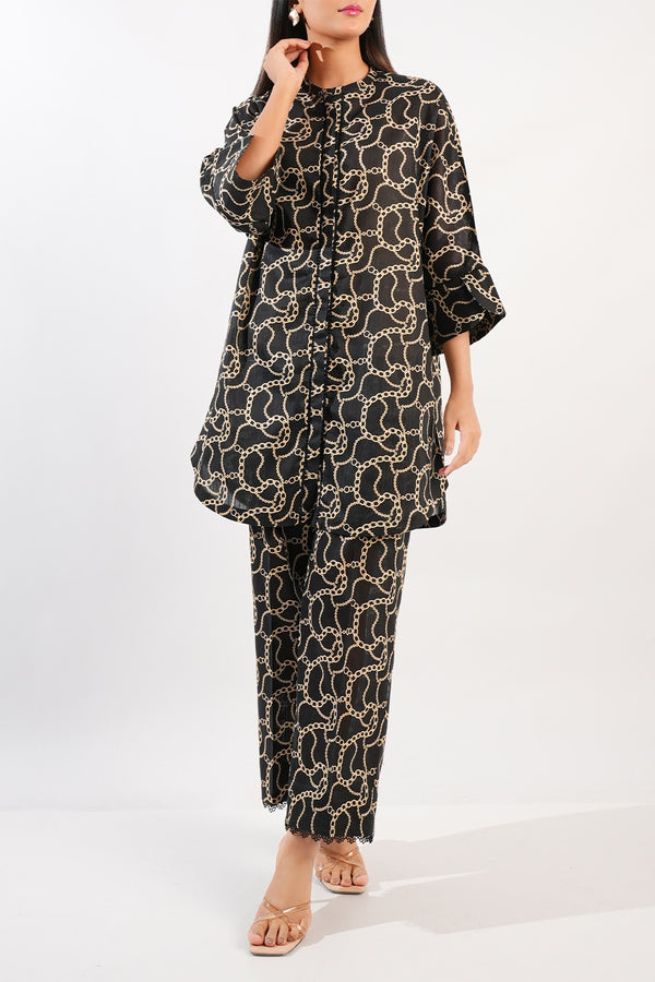 Design: SP-9834 (P16-24037-03AA 2Pcs) S+TColor: Black Fabric: Cambric Product Detail Infuse your wardrobe with vibrant prints and everyday ease through Saya’s Printed Cambric Stitched 2 Piece . This ready-to-wear set features a...