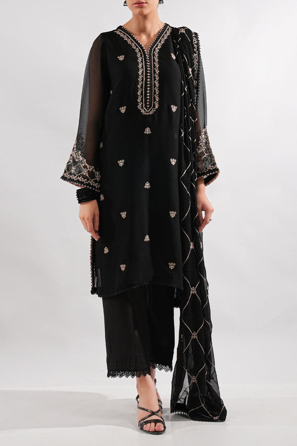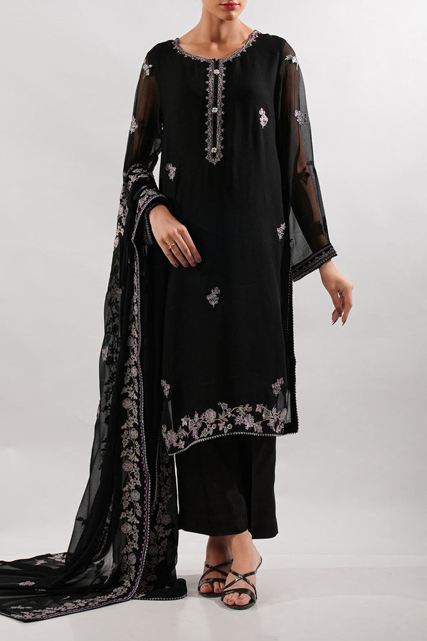 Design: SP-9617 (P14-24162-E61A 3Pcs)Color: Black Fabric: Chiffon Product Detail Step into elegance with our Solid Embroidered Chiffon Stitched 3-Piece, a perfect blend of grace and sophistication. This ready-to-wear ensemble features a delicate chiffon...