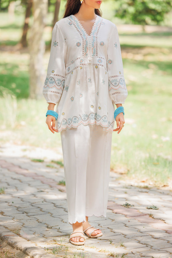 Design: SP-7509 (P16-25006-E05A 2Pcs) S+T Color: White Fabric: Cotton Product Detail Elevate your style with Saya’s Solid Embroidered Cotton Stitched 2-Piece set. Designed from premium cotton, this ensemble features delicate embroidery...