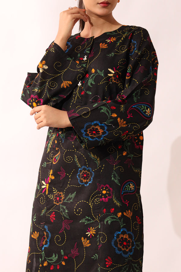Printed Embroidered Khaddar Stitched 2 Piece (Shirt/Trouser)