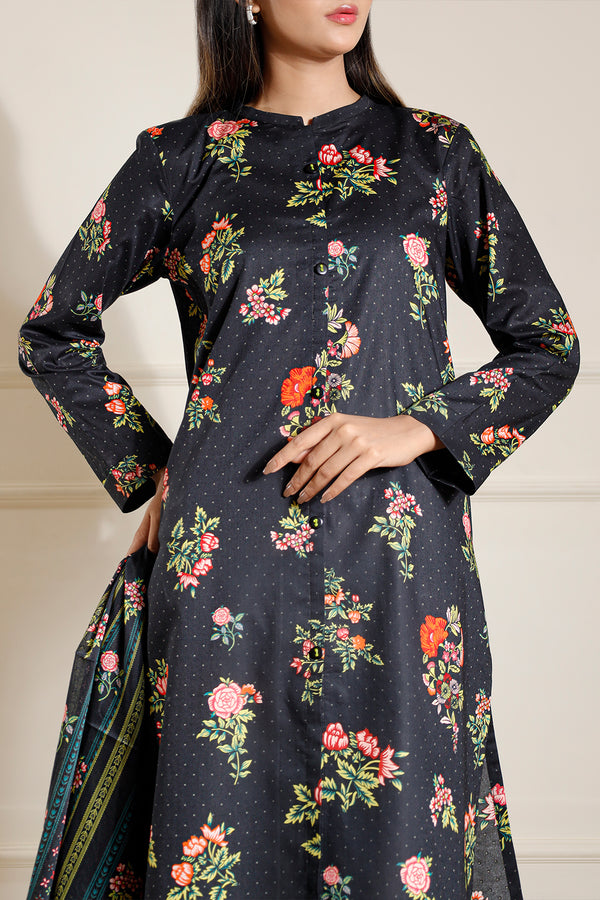 Design: U01-25222-12A (SDT)Color: BlackFabric: Lawn Product Detail Brighten your summer wardrobe with this unstitched printed lawn 3-piece suit, featuring intricate floral patterns and a soft lawn dupatta. Ideal for everyday...
