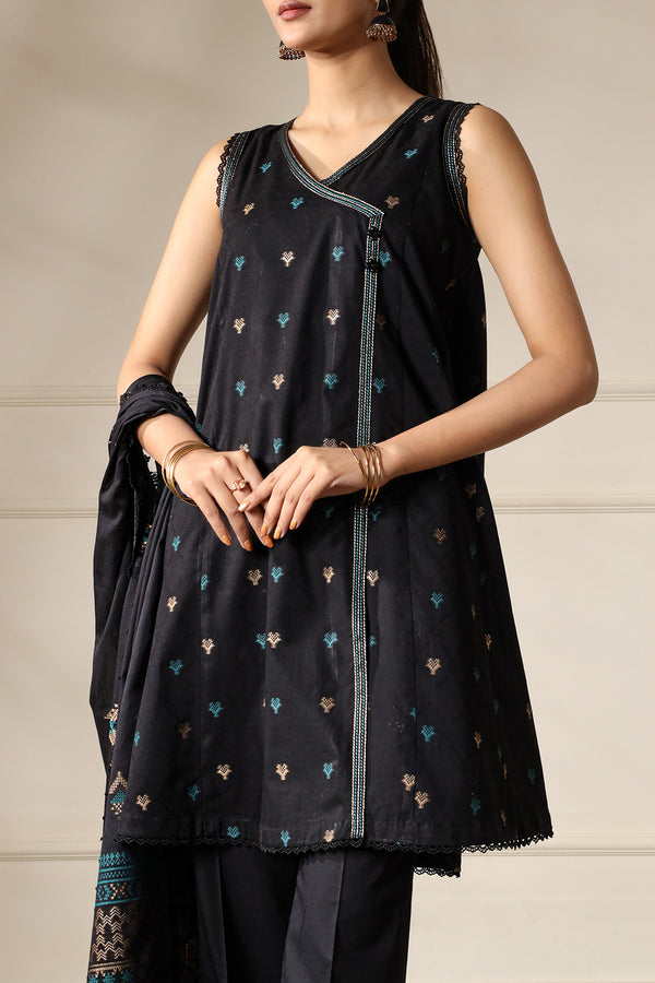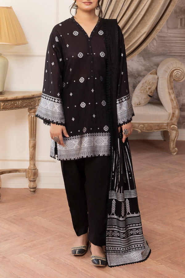 Design: U02-25232-18A (SDT)Color: Black Fabric: Cotton Jacquard Product Detail Bring refined elegance to your wardrobe with this unstitched jacquard cotton 3-piece set from Saya.pk. Featuring a soft, breathable texture, the ensemble...