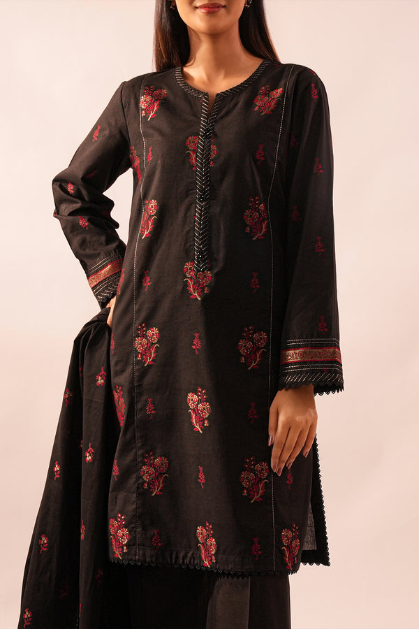 Design: U03-25123-E03B (SDT) EMBColor: Black Fabric: Cambric Product Detail Elevate your style with Saya’s Unstitched Solid Embroidered Cambric 3‑Piece. Includes an embroidered cambric shirt, matched trouser fabric, and a soft...