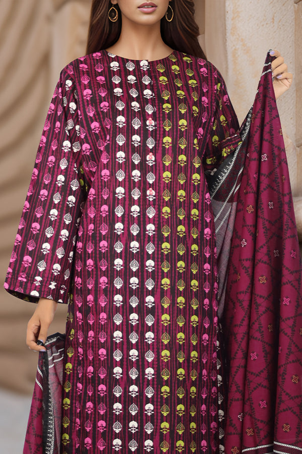 Design: SP-8057 (P14-24027-E11B-CD 3Pcs)Color: PlumFabric: Lawn Product Detail Experience the perfect blend of elegance and comfort with this stitched printed embroidered lawn 3-piece suit. The beautifully printed lawn shirt is adorned...
