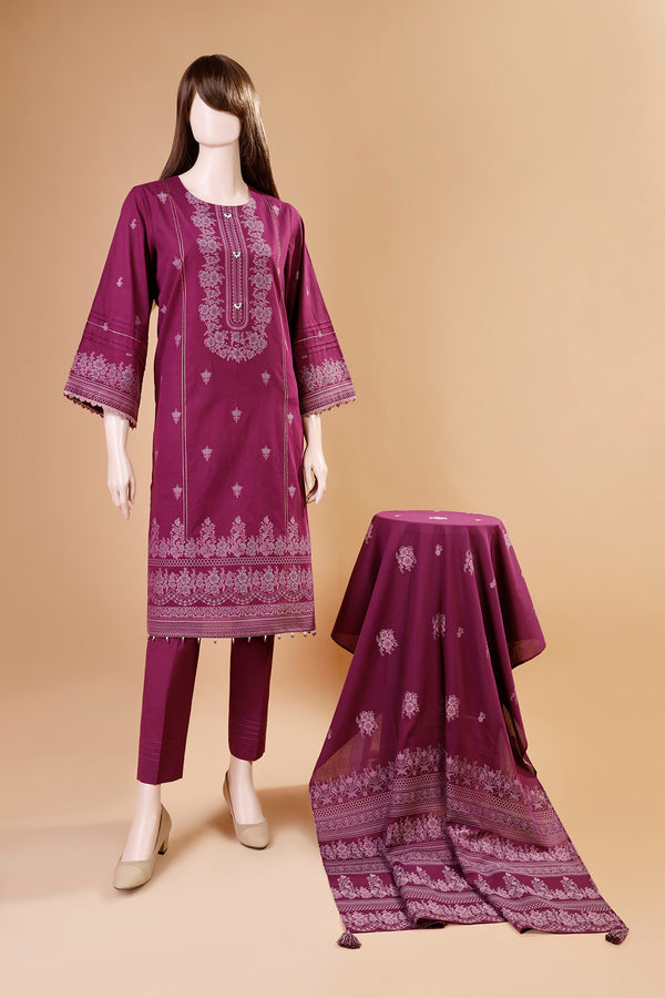 Design: SHIRIN U02-2279-01BColor: Fuschia Fabric: Cotton Jacquard Product Detail Cotton Jacquard Unstitched 3-Piece Shirt 1-Dyed Premium Jacquard Shirt 3.00M. Dupatta 2-Dyed Premium Jacquard Dupatta 2.5 M. Trouser 3-Premium Dyed Trouser 2M....