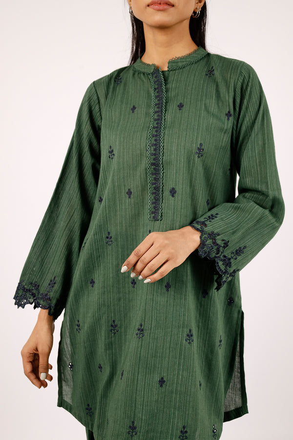Solid Embroidered Zari Stript Stitched 2 Piece (Shirt/Trouser)