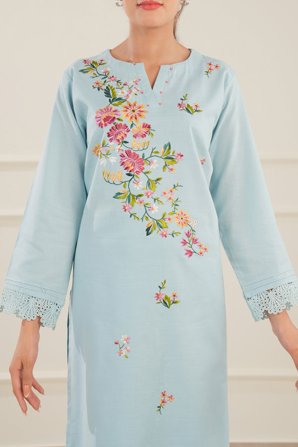 Design: SP-5811 (P16-24236-E04A 2Pcs) S+TColor: Blue Fabric: Zari Filament Product Detail Enhance your wardrobe with this solid embroidered zari filament stitched 2-piece outfit. Crafted from premium fabric with delicate zari...