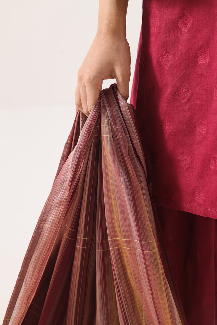 Vibrant And Versatile, This SAYA Cotton Jacquard Dupatta In Multi Color Adds A Refined Pop To Any Ensemble. The Jacquard Weave Boasts A Delicate Self-Pattern That Catches Light Gracefully, Enhancing Visual Depth Without Overpowering. Crafted From Premium Cotton, It Combines Gentle Softness With Structural Integrity, Ensuring A Graceful Drape That Retains Form. Perfect For Draping Over Evening Dresses, Layering With Solid Kurta Sets, Or Elevating Casual Day Looks, This Dupatta Balances Color, Texture, And Elegant Flair.