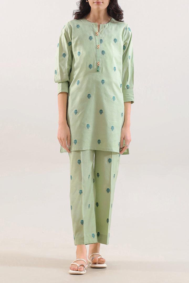 Embrace Understated Elegance With This Cotton Jacquard Stitched 2-Piece Shirt And Trouser Set By SAYA, Tailored For Comfort And Minimal Sophistication. Crafted From Textured Cotton Jacquard Fabric, The Shirt Offers A Refined Look With Its Subtle Woven Pattern And Smooth Structure. The Coordinated Trouser Complements The Shirt With A Clean, Straight Cut, Ensuring A Balanced And Polished Silhouette. Ideal For Casual Office Wear, Semi-Formal Daytime Events, Or Effortless Daily Dressing, This Ensemble Reflects SAYA’s Signature Fusion Of Quality Craftsmanship, Timeless Design, And Functional Fashion.