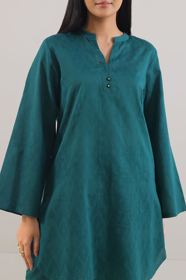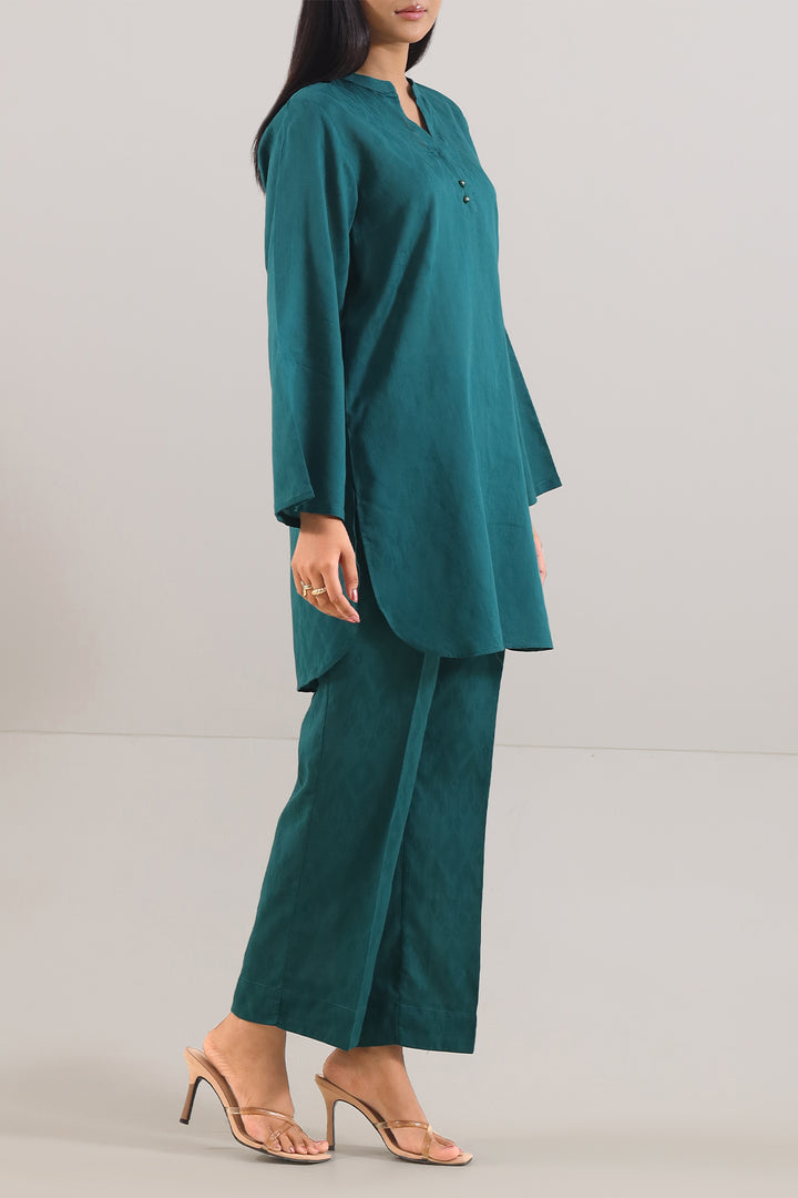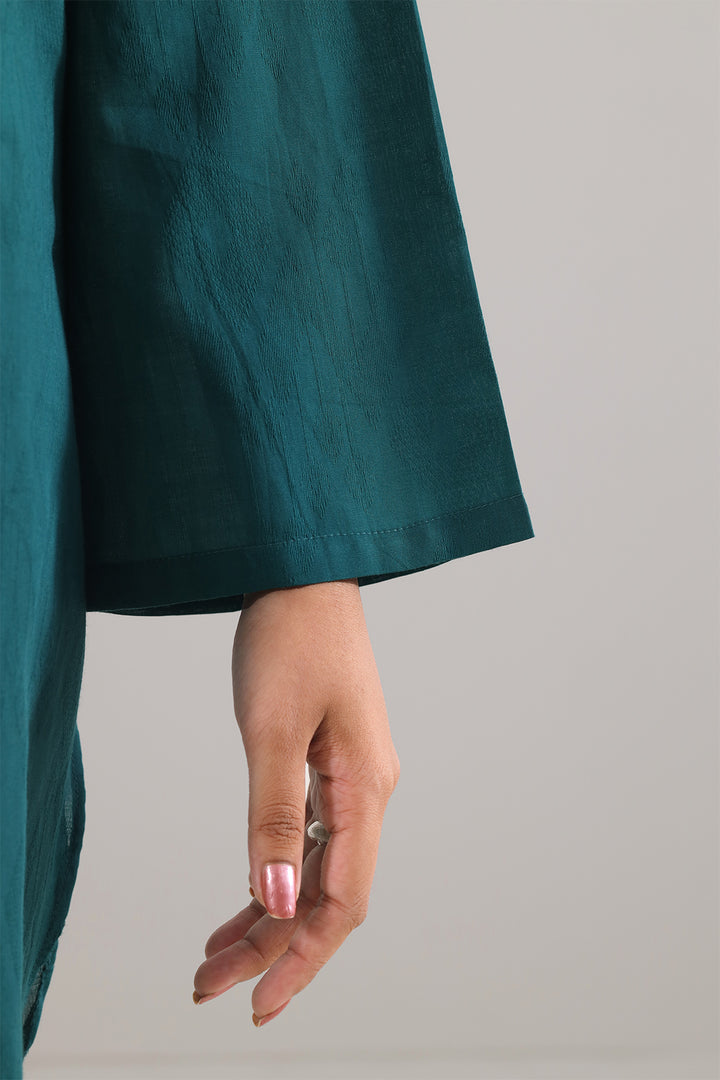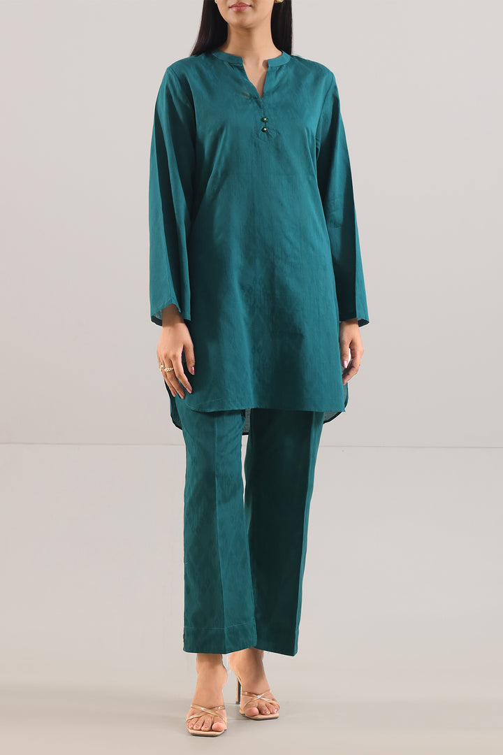 Cotton Jacquard Stitched Two-Piece Shirt & Trouser By SAYA, Crafted From Rich Textured Cotton Jacquard That Offers Subtle Visual Depth Alongside Breathable Comfort. The Shirt Features Structured Draping In An Elegant Green Tone With Fine Woven Detailing, Paired Seamlessly With A Coordinated Trouser For A Cohesive Finish. Ready-To-Wear With Quality Stitching And Durable Seams, It’s Ideal For Smart Daywear, Casual Office Meetings Or Semi-Formal Outings. This Ensemble Blends Sophisticated Simplicity With Practical Utility, Making It A Timeless Wardrobe Essential.