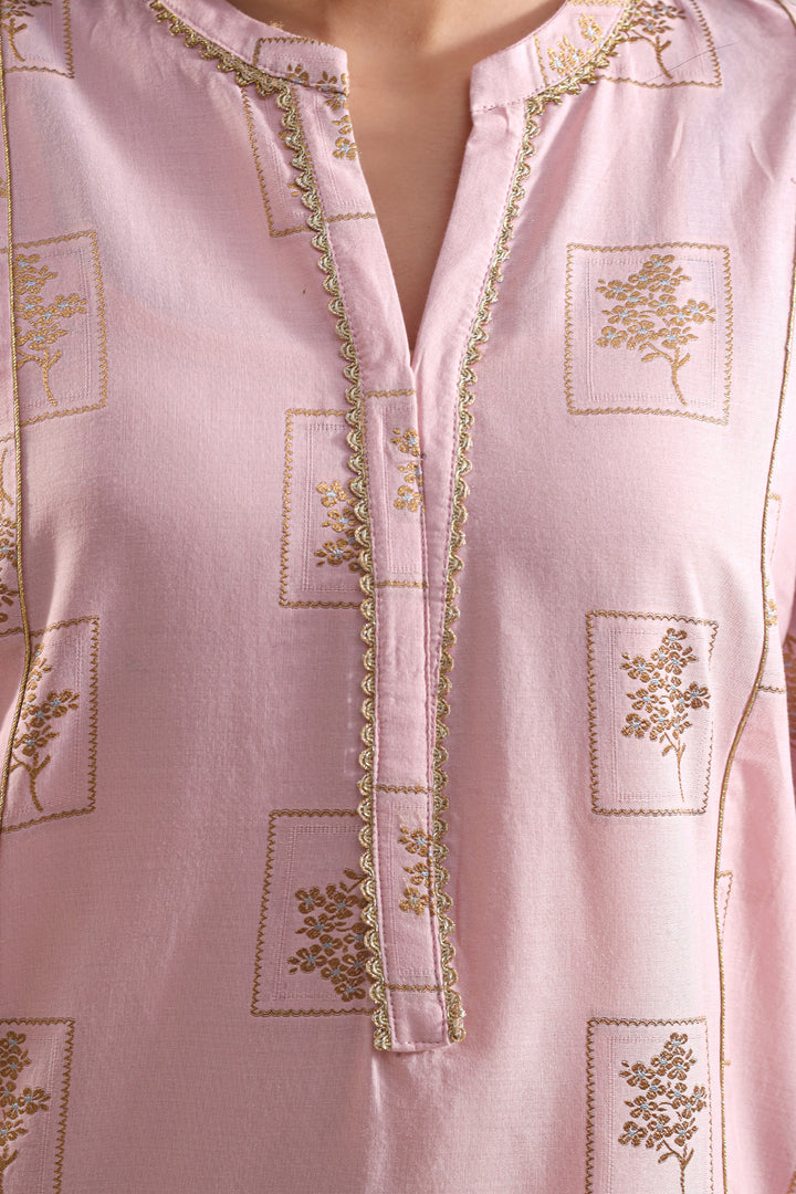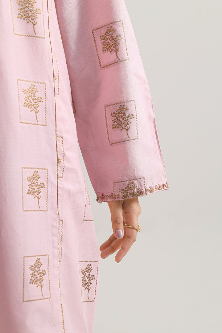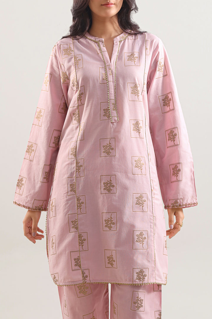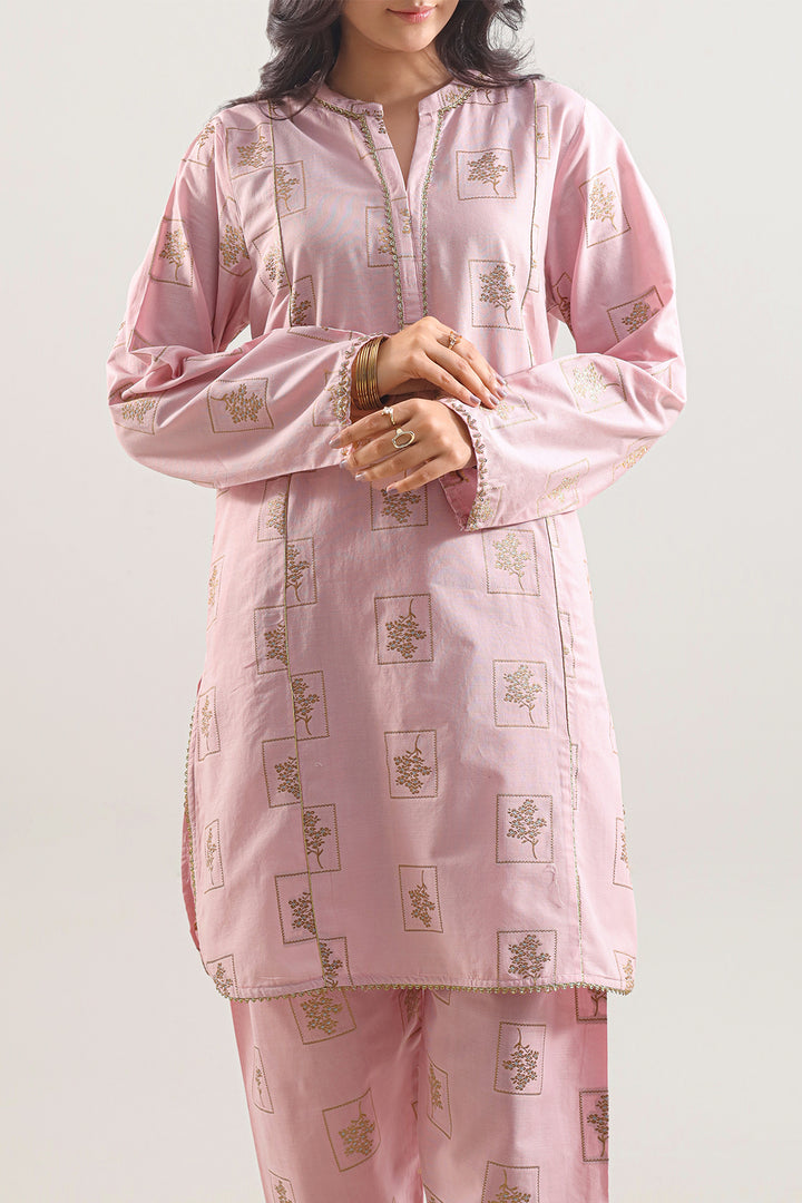 Pink Cotton Jacquard Two-Piece From SAYA Includes A Ready-To-Wear Shirt And Trouser. The Jacquard Weave Adds Elegant Texture, While Breathable Cotton Ensures Comfort. Soft Pink Tone With Clean Tailoring Makes It Perfect For Semi-Formal Outings, Day Events, Or Stylish Casual Looks.