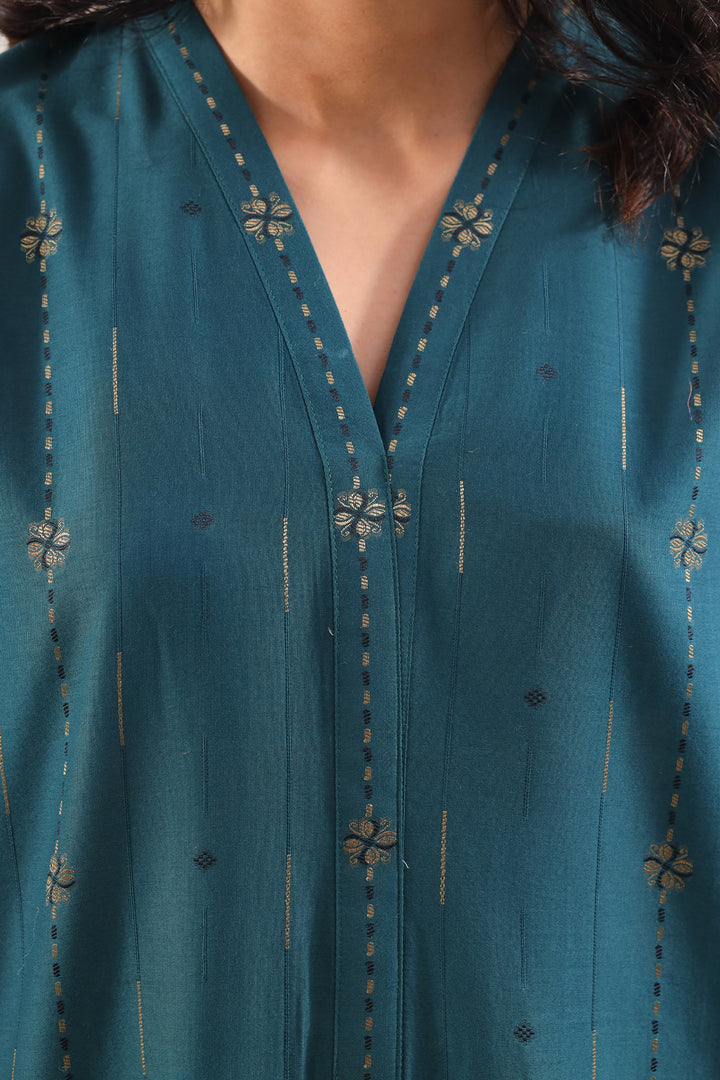 Exemplify Refined Style With The SAYA Cotton Jacquard Stitched Two-Piece Set. Meticulously Tailored From Premium Cotton Jacquard, This Ensemble Showcases An Intricate Woven Pattern That Lends A Touch Of Textural Sophistication. The Breathable, Durable Fabric Ensures All-Day Ease, Making It An Ideal Choice For Significant Events. This Coordinated Shirt And Trouser Set Is Designed For A Flawless, Ready-To-Wear Fit, Seamlessly Blending Timeless Craftsmanship With Modern Elegance For Weddings, Festive Gatherings, And Distinguished Occasions.