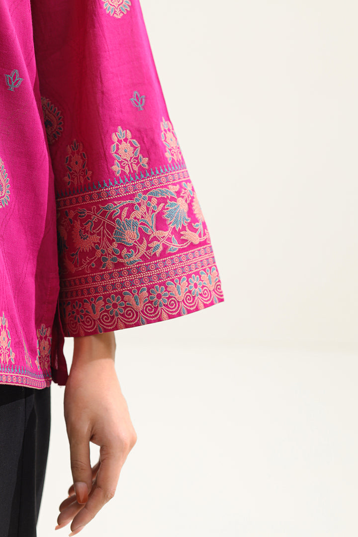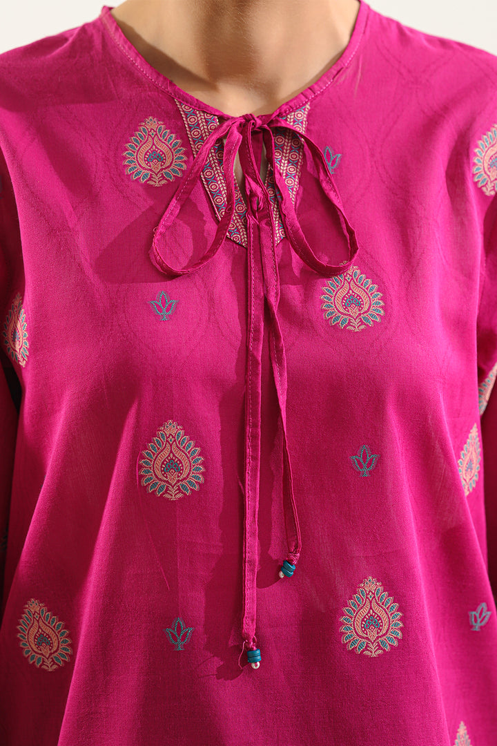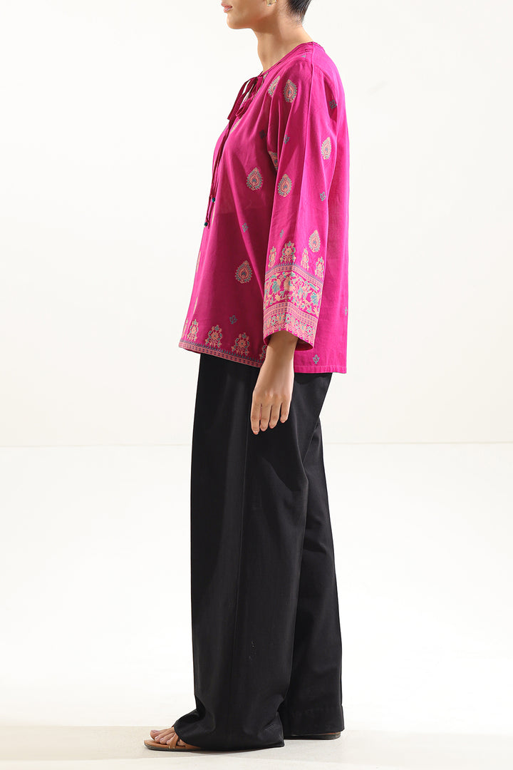 Redefine Smart Casual Dressing With This Cotton Jacquard Stitched Fusion Top By SAYA, Designed To Deliver Effortless Elegance With A Contemporary Edge. Crafted From Rich, Textured Cotton Jacquard, The Fabric Offers A Refined Feel And Breathability, Ideal For All-Day Wear. The Shirt Showcases A Modern Silhouette With Intricate Pattern Detailing That Adds Depth And Sophistication To The Look. Perfect For Casual Gatherings, Office Wear, Or Weekend Outings, This Versatile Top Is A Chic Choice For Women Who Appreciate Quality, Comfort, And Stylish Simplicity In One Seamless Piece.