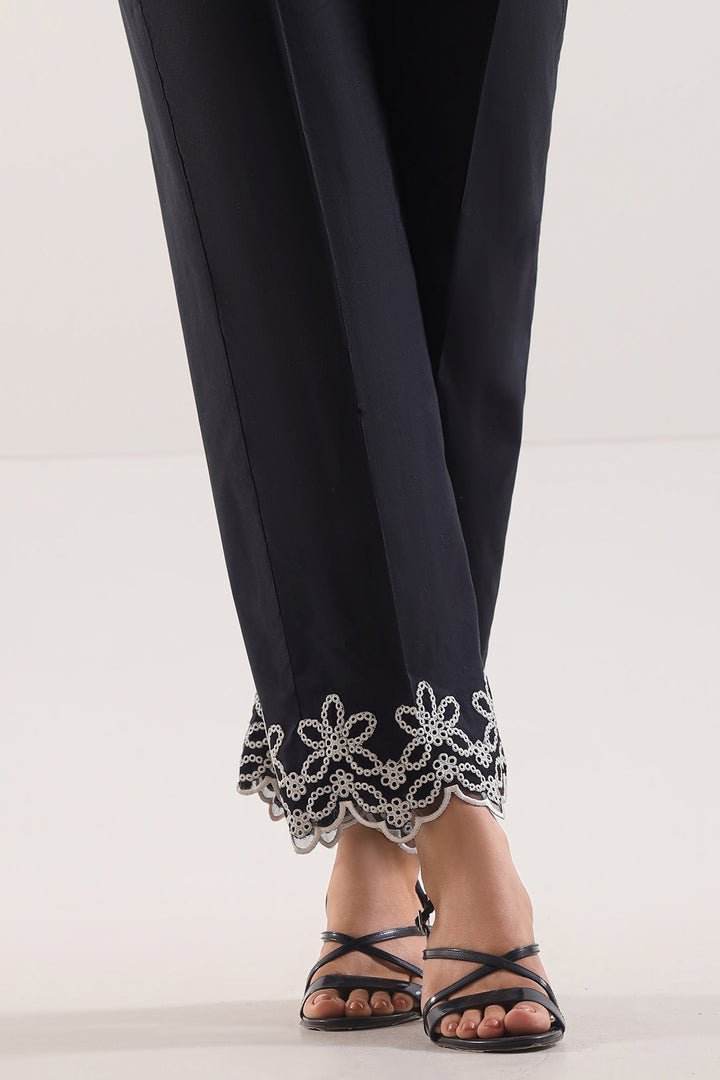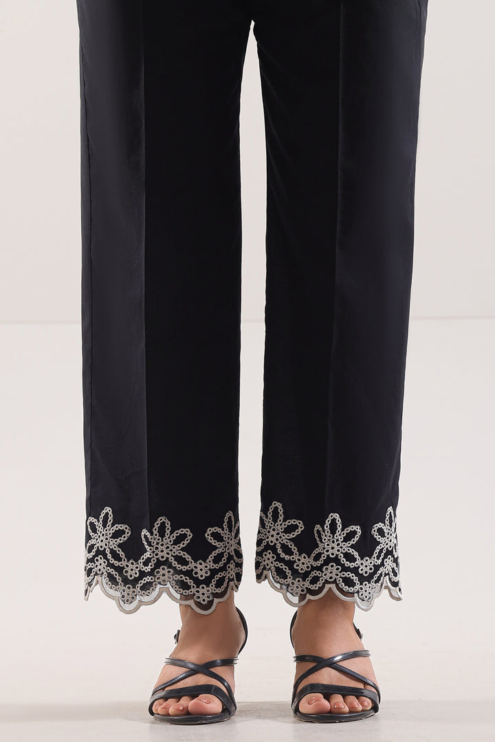 Embroidered Cambric Pant By SAYA Crafted From Fine Cambric Fabric That Boasts A Soft Feel, Light Weight, And Breathability. The Black Hue Enriched With Delicate Embroidery Detail Adds A Touch Of Elegance Without Overstatement. Expertly Tailored With Clean Seams, A Comfort-Focused Waistband, And Durable Finish, This Pant Balances Practical Utility With Style. Ideal For Pairing With Lawn Or Jacquard Tops — From Casual Day Looks To Evening Ensembles.
