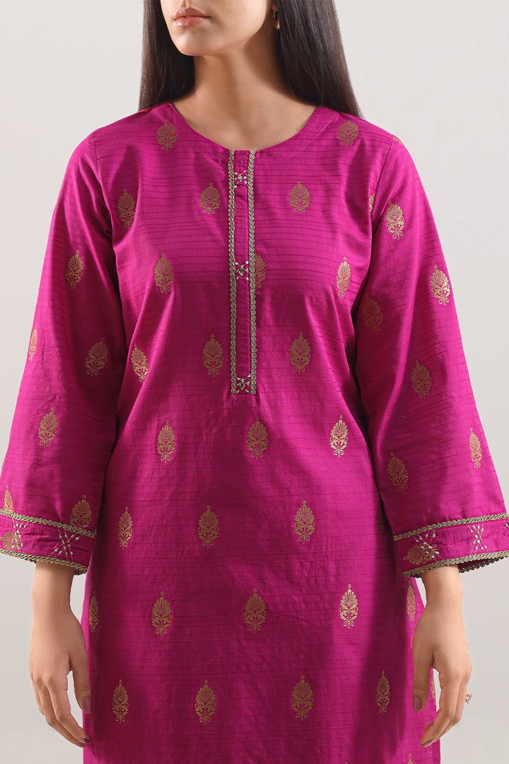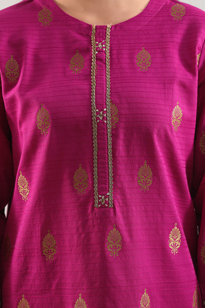 Elevate your ethnic wardrobe with our Embroidered Cotton Jacquard Stitched 2-Piece, a perfect fusion of traditional craftsmanship and contemporary comfort. This ready-to-wear ensemble features premium jacquard cotton fabric adorned with exquisite embroidery, offering a luxurious look for special occasions.