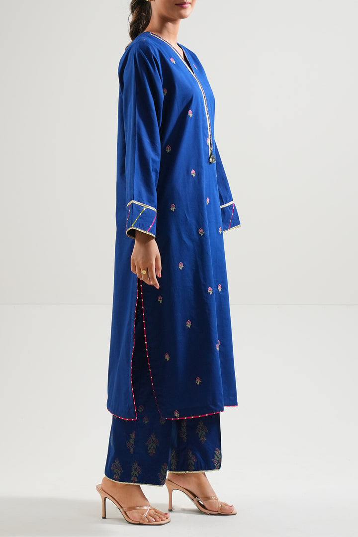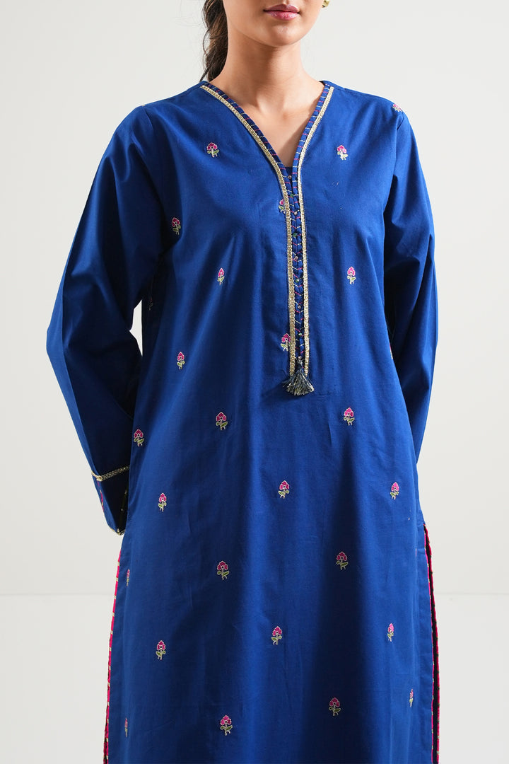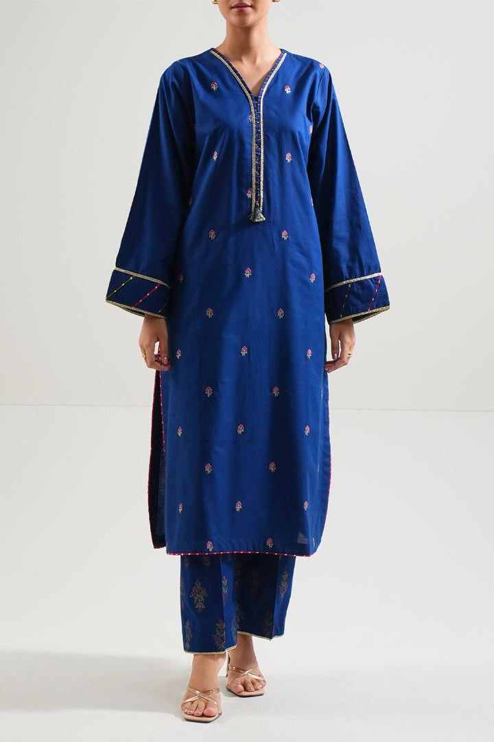 This embroidered cotton jacquard stitched 2-piece suit by Saya.pk offers a blend of elegance and ease. The breathable textured fabric features refined embroidery, paired with a matching trouser for a graceful look ideal for everyday wear or casual outings.