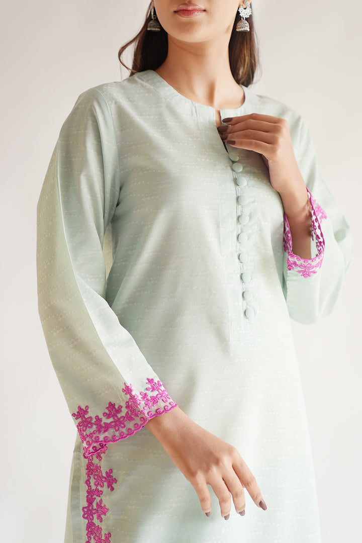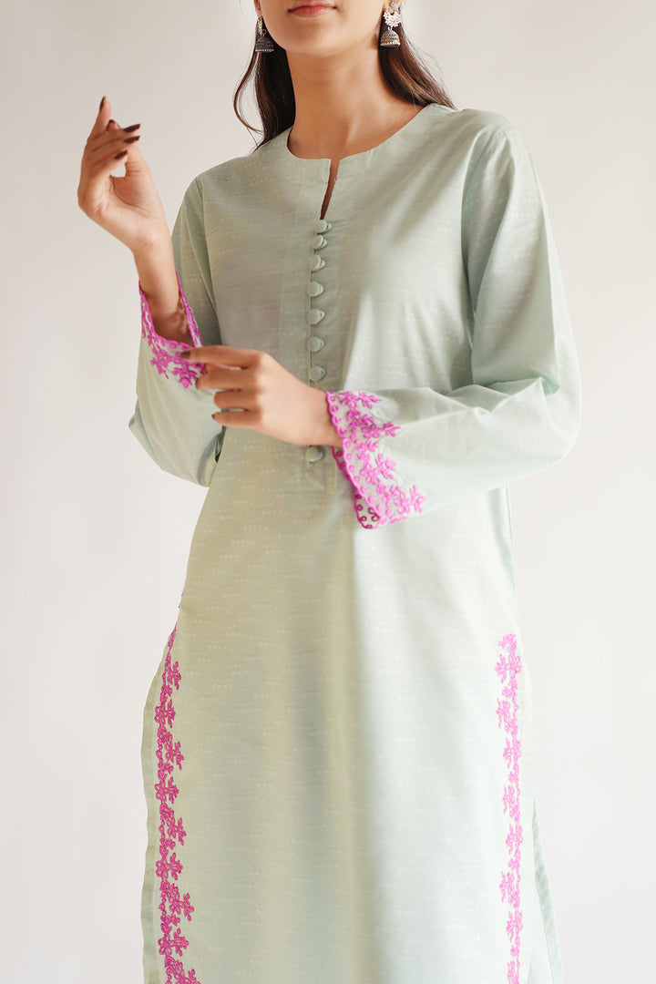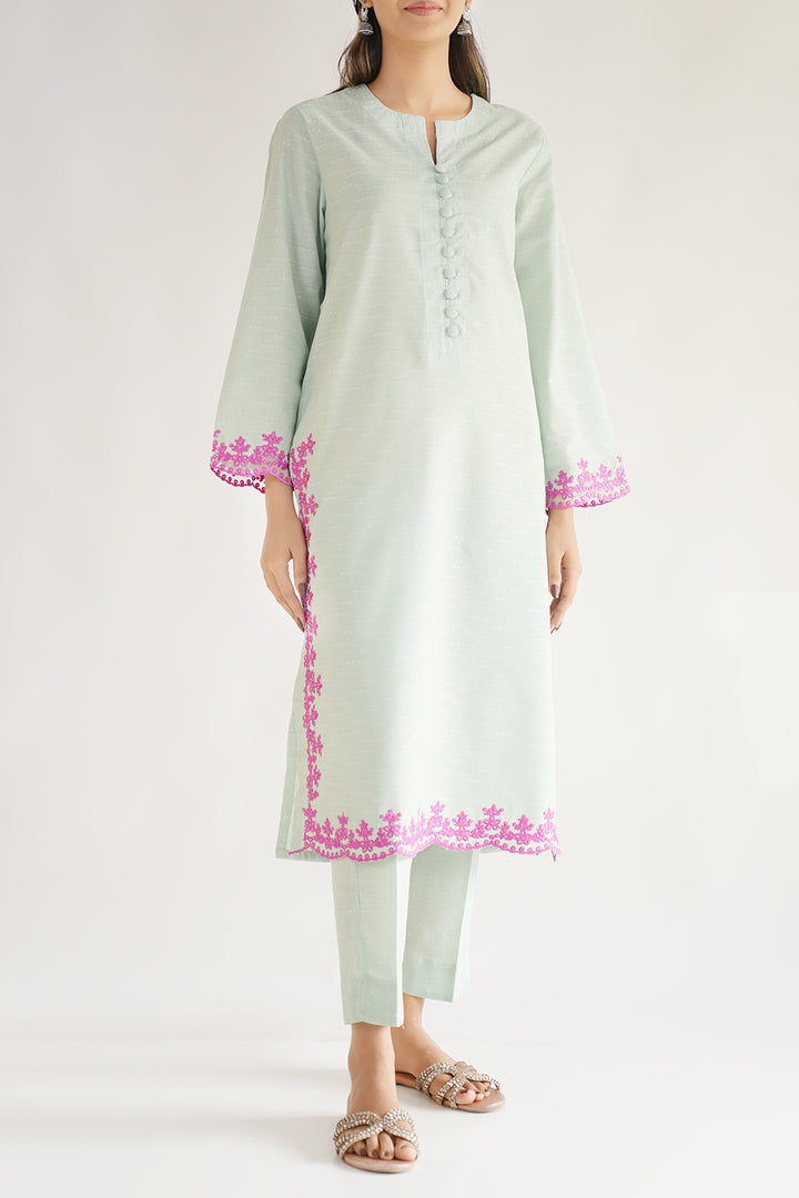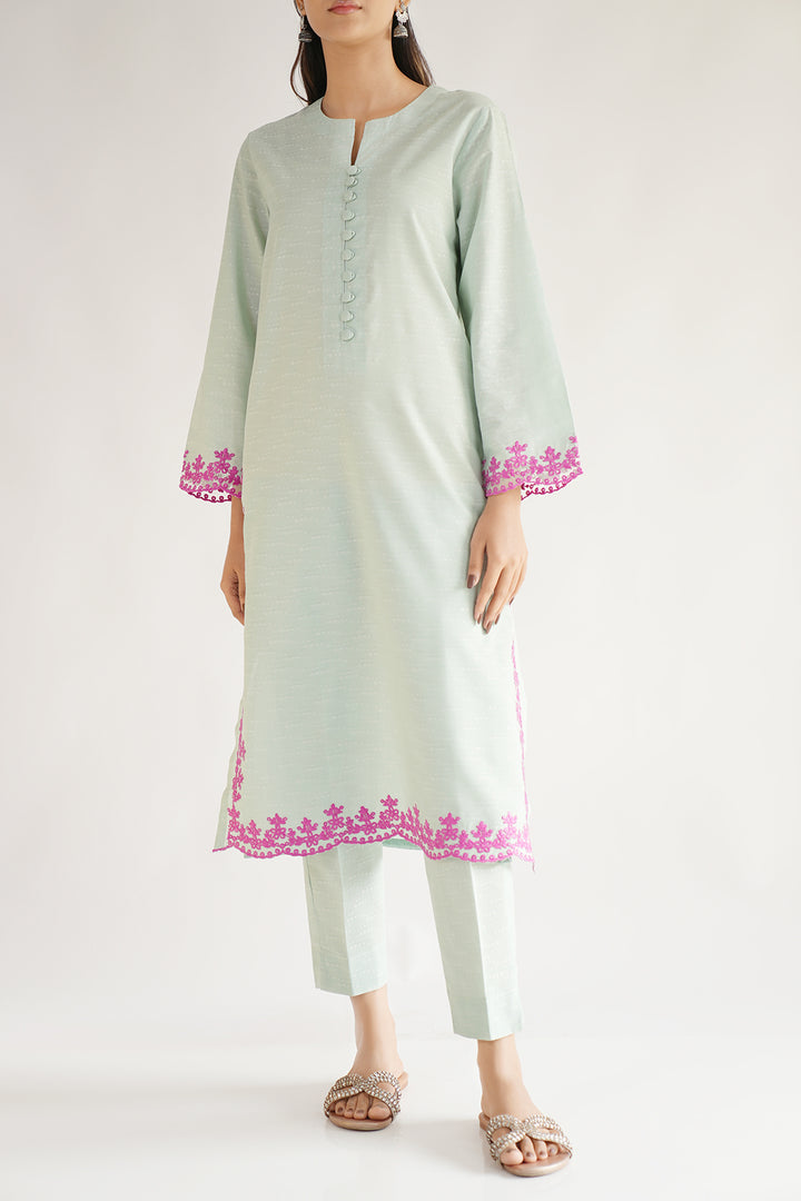 Ready To Wear Embroidered Cotton Jacquard Stitched Shirt.