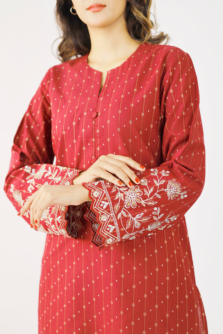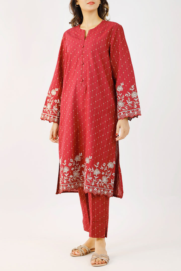 Embroidered Cotton Jacquard Stitched 2 Piece (Shirt/Trouser)
