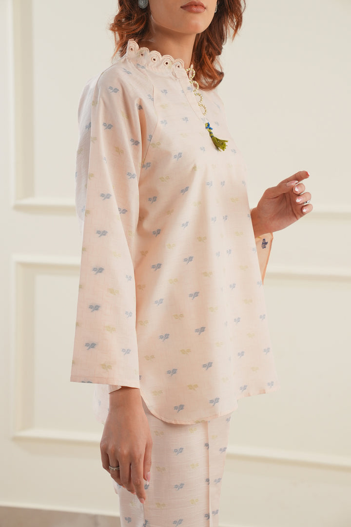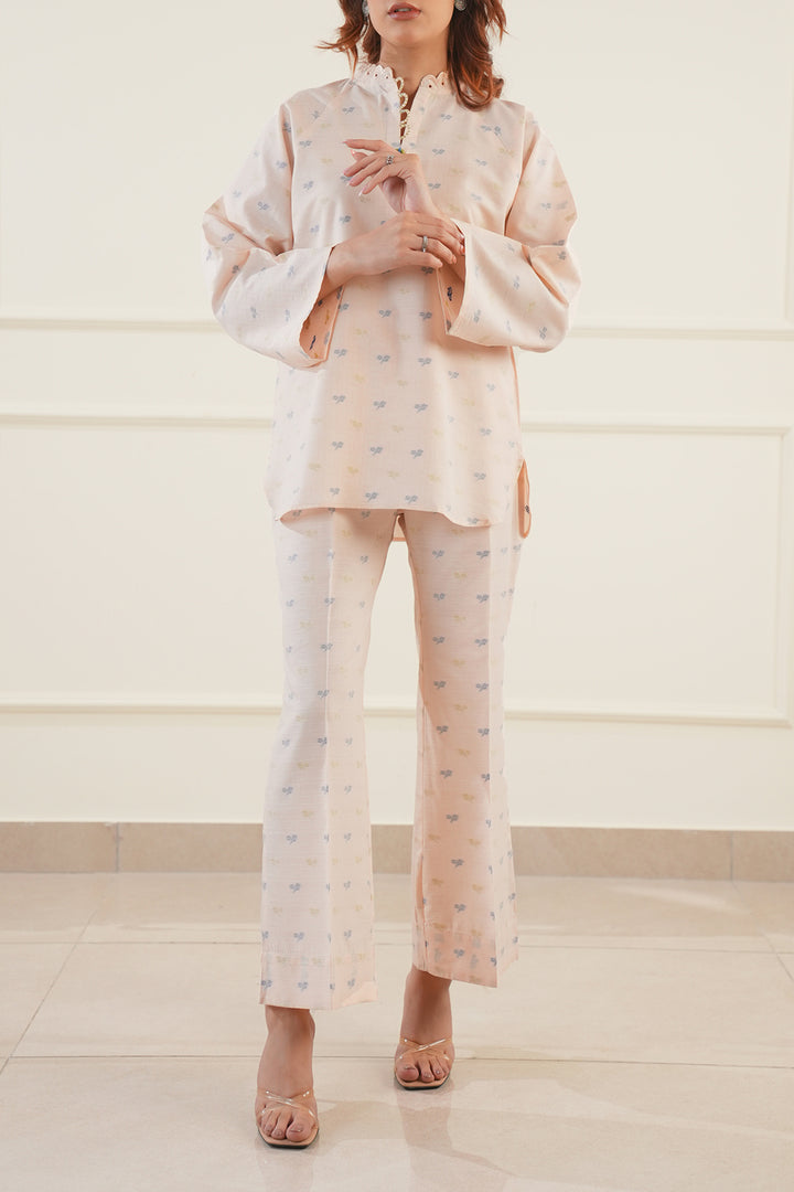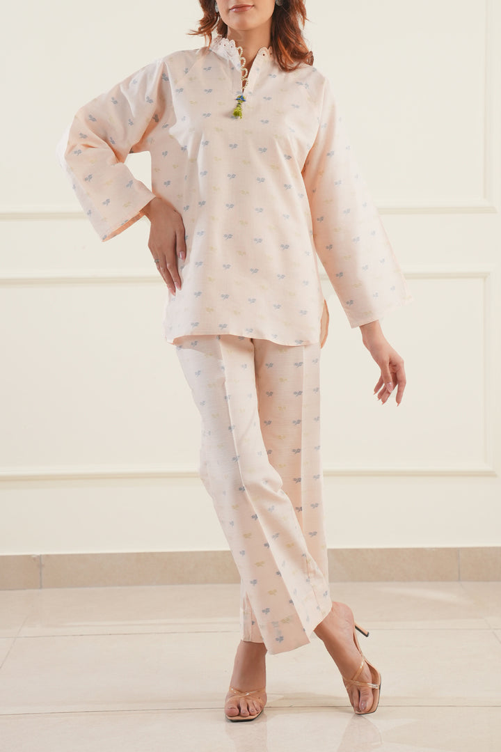 Enhance your style with Saya.pk's Embroidered Cotton Jacquard Stitched 2-Piece Set. This outfit features an intricately embroidered shirt paired with a comfortable trouser, offering a blend of sophistication and ease. Perfect for festive and formal occasions.