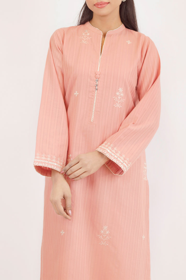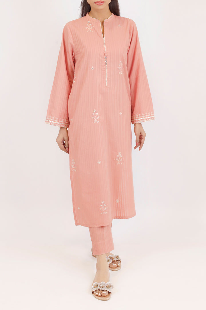Ready To Wear Embroidered Cotton Jacquard Stitched Shirt.