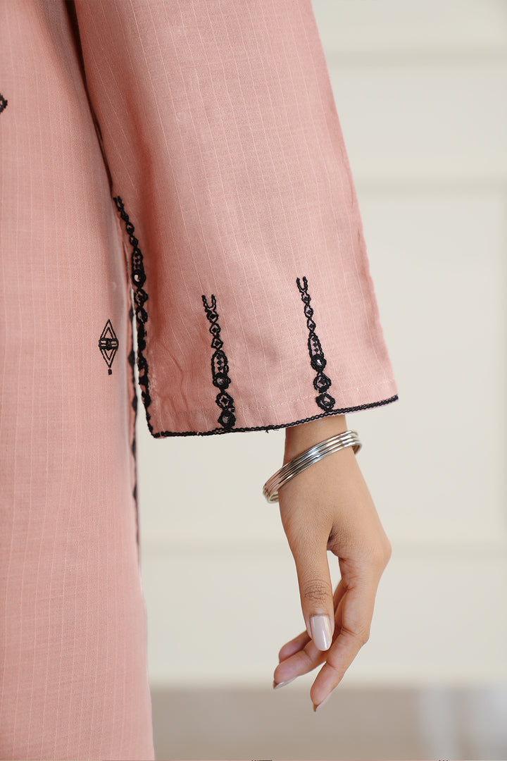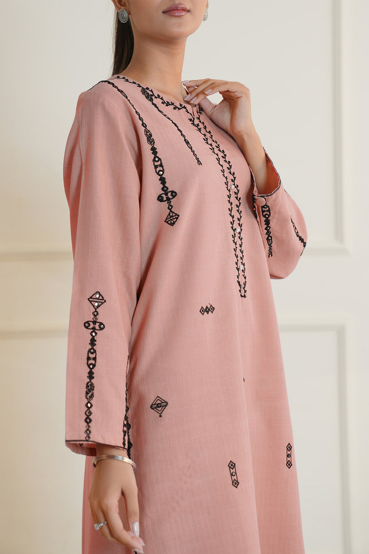 Ready To Wear Embroidered Cotton Jacquard Stitched Shirt.