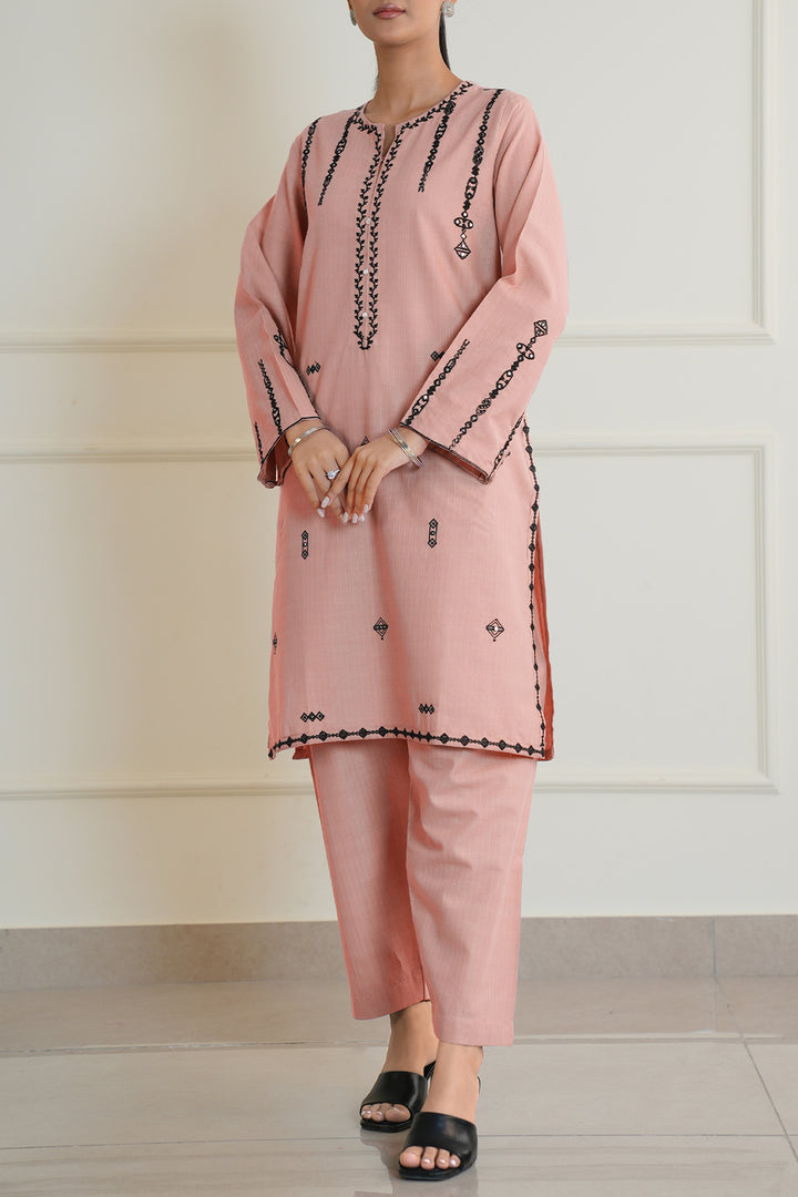 Embroidered Cotton Jacquard Stitched 2 Piece (Shirt/Trouser)
