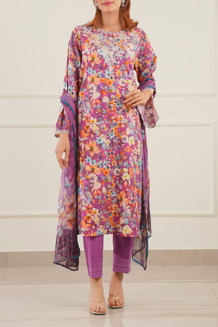 Introducing Saya's Embroidered Cotton Jacquard Stitched 2-Piece ensemble, a perfect fusion of elegance and comfort. This ready-to-wear set features a meticulously embroidered shirt paired with matching trousers, both crafted from premium cotton jacquard fabric. The breathable material ensures all-day comfort, making it an ideal choice for both casual and semi-formal occasions.