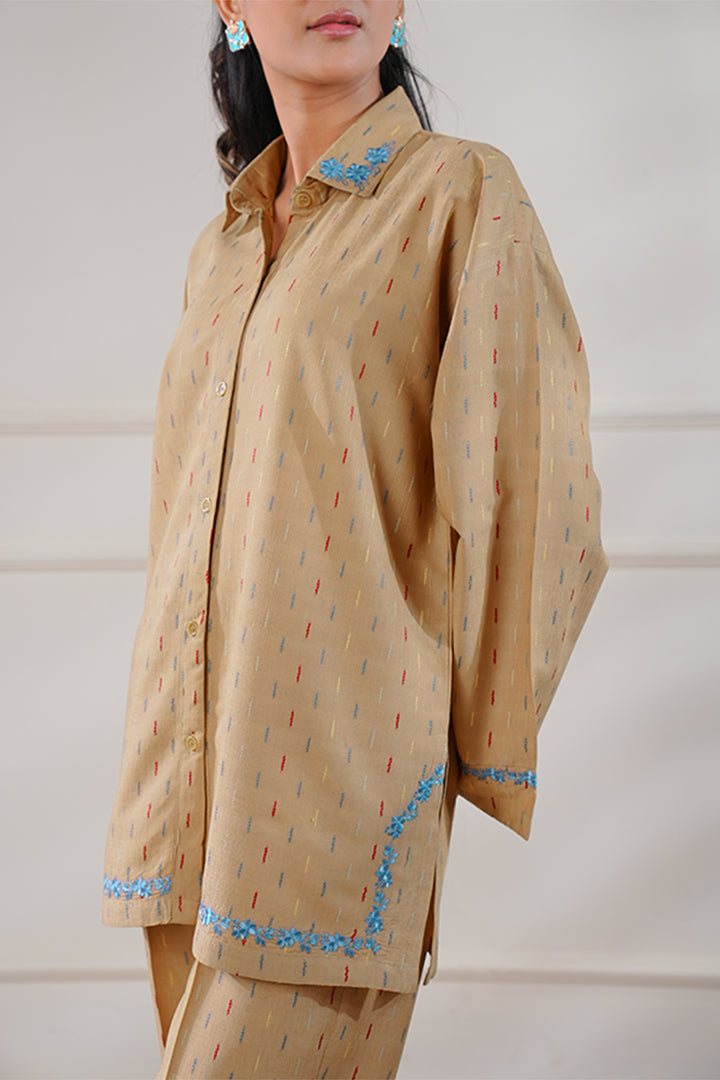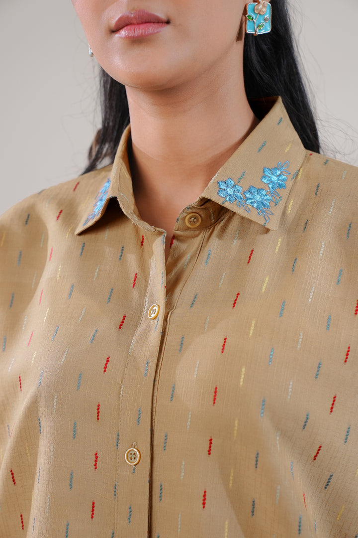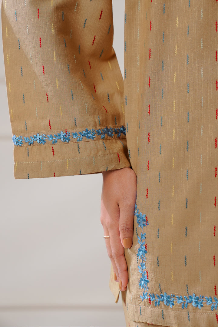Ready To Wear Embroidered Cotton Jacquard Stitched Shirt.