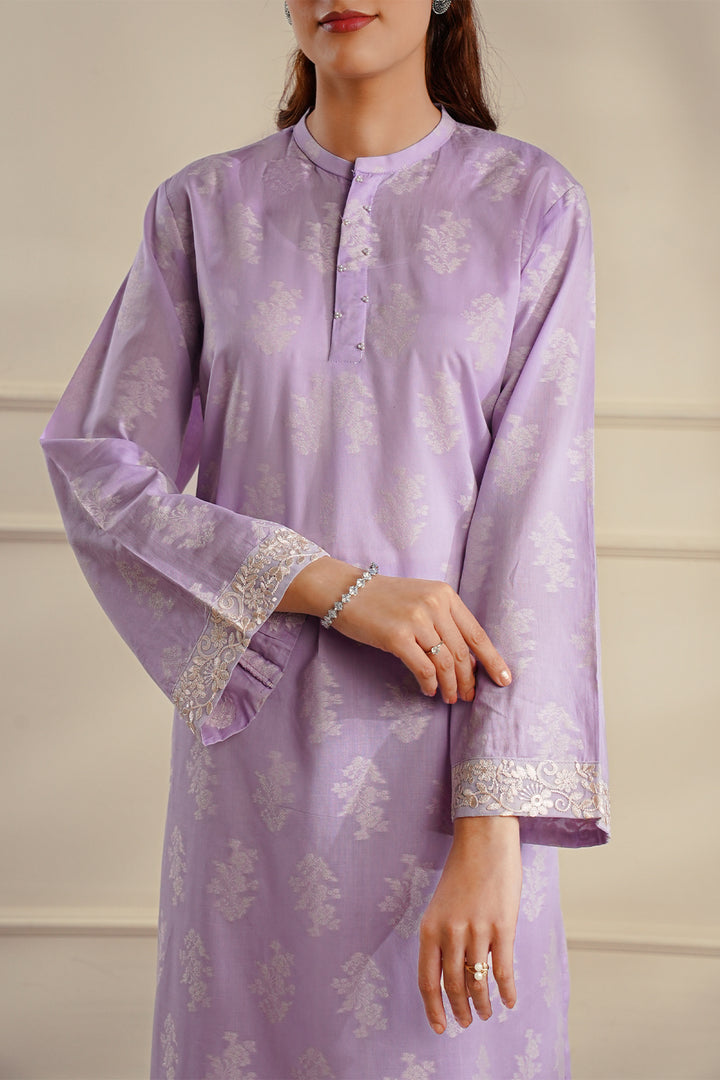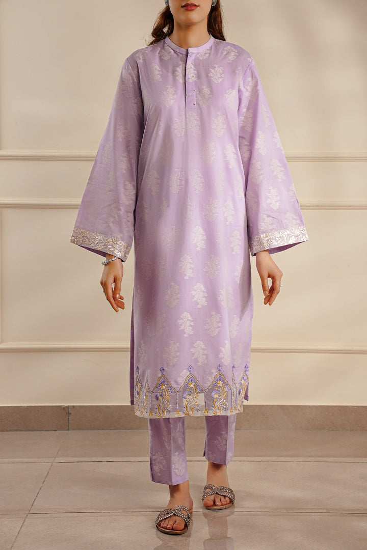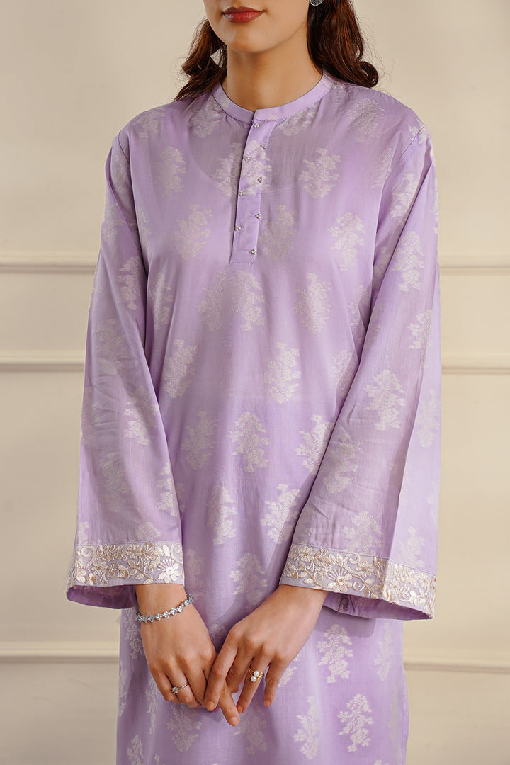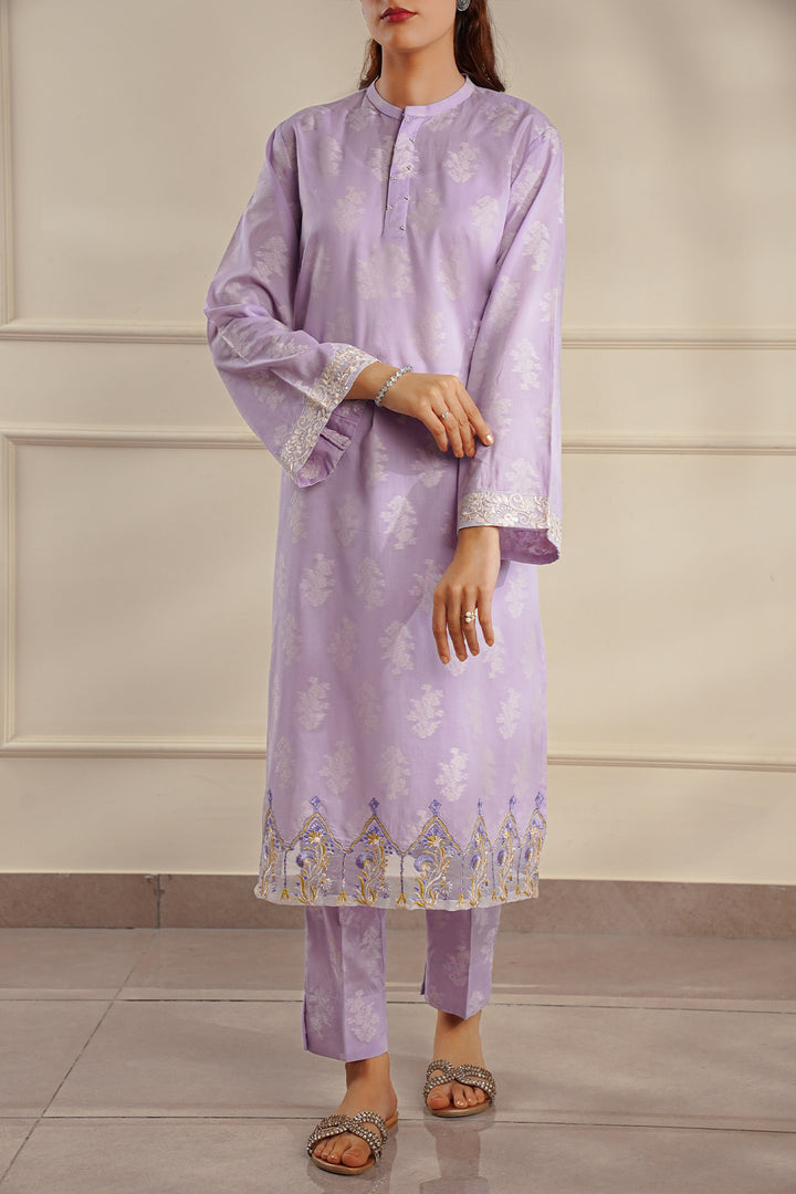 Ready To Wear Embroidered Cotton Jacquard Stitched Shirt.