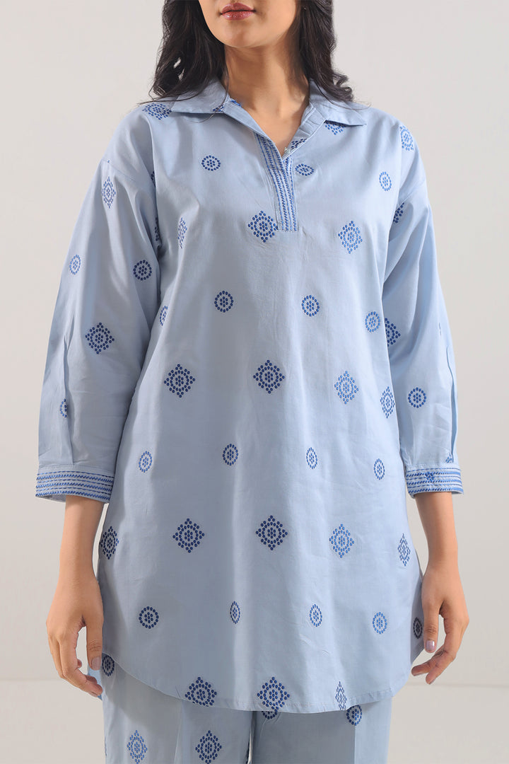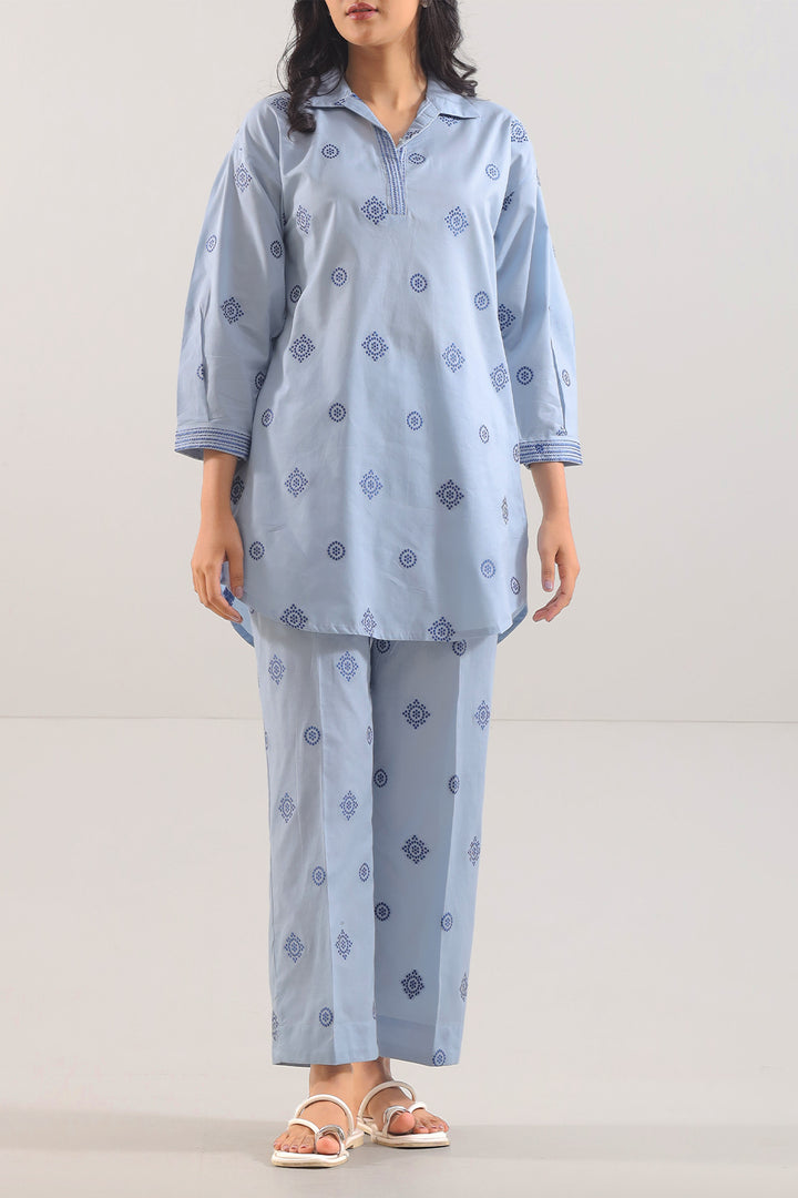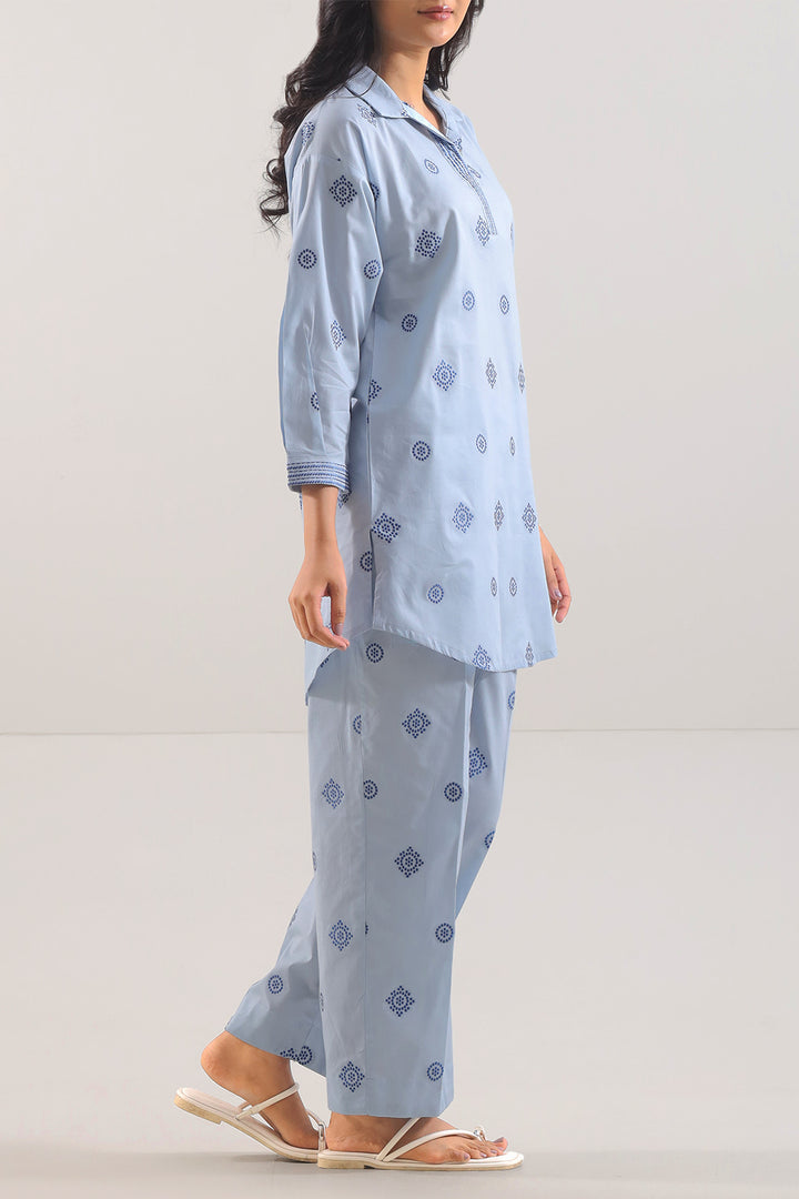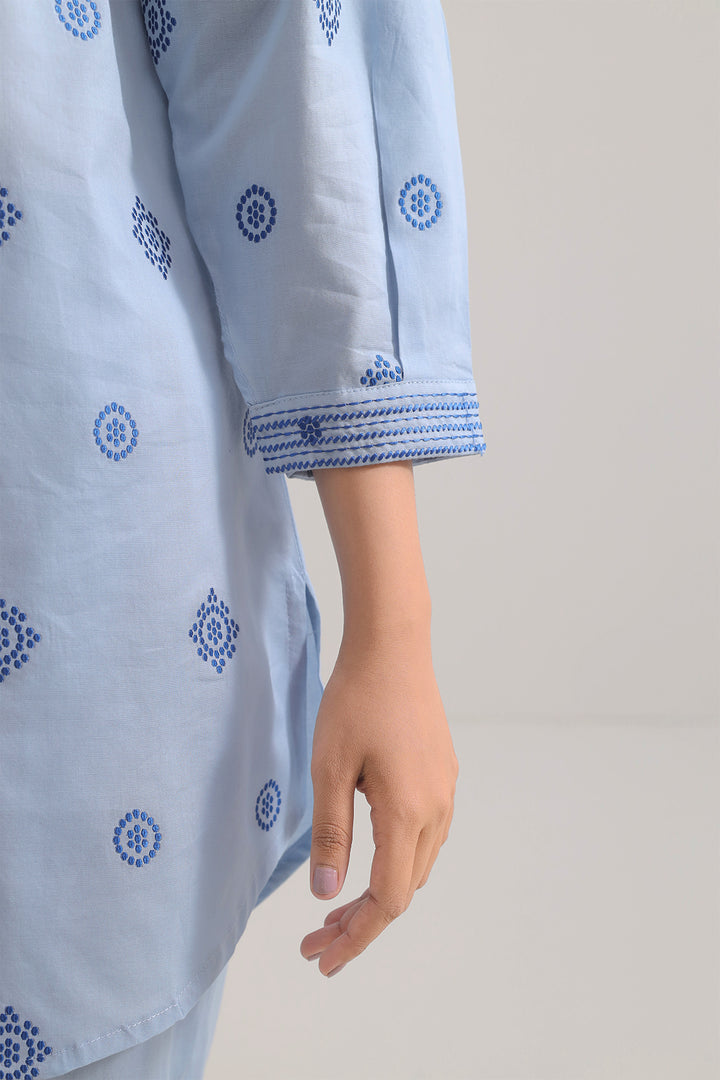 Embroidered Cotton Jacquard 2-Piece (Shirt & Trouser) By SAYA Crafted From Exquisite Cotton Jacquard Fabric That Offers A Rich Texture With Breathability. The Light Blue Hue With Delicate Embroidery Adds Understated Elegance, Ideal For Evening Gatherings, Festive Events Or Formal Occasions. Impeccably Tailored With Sharp Silhouettes, Reinforced Seams And A Clean Finish, This Ensemble Combines Style And Substance. A Statement Set That Elevates Your Look With Refinement And Effortless Grace.