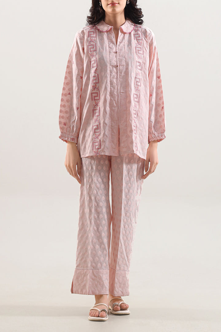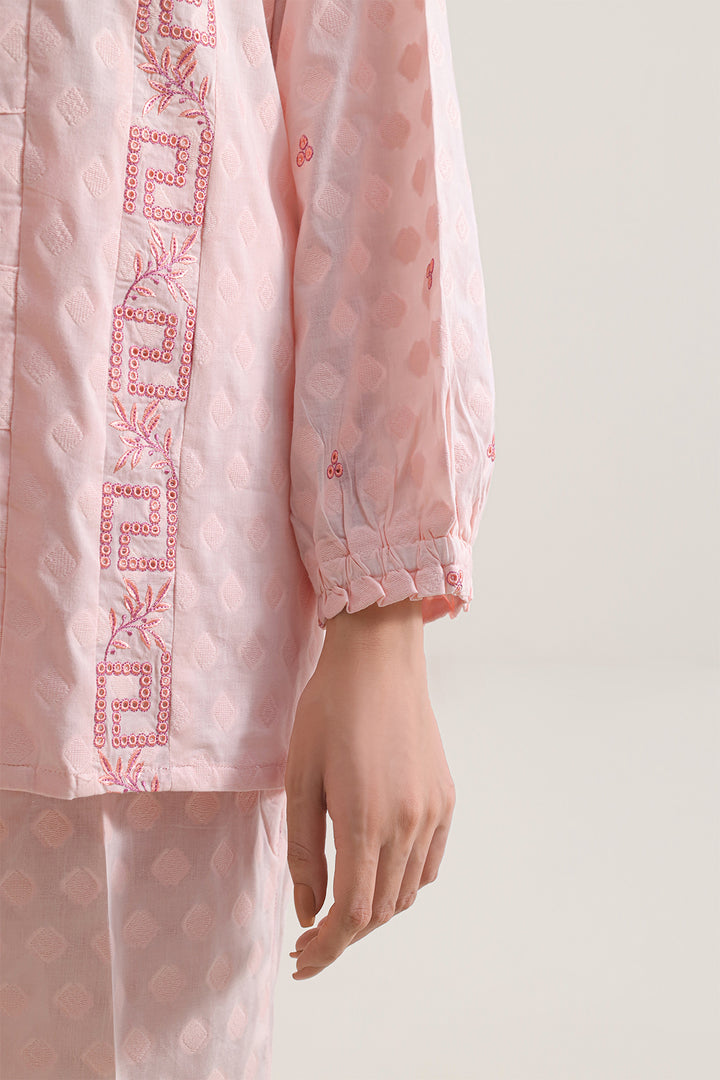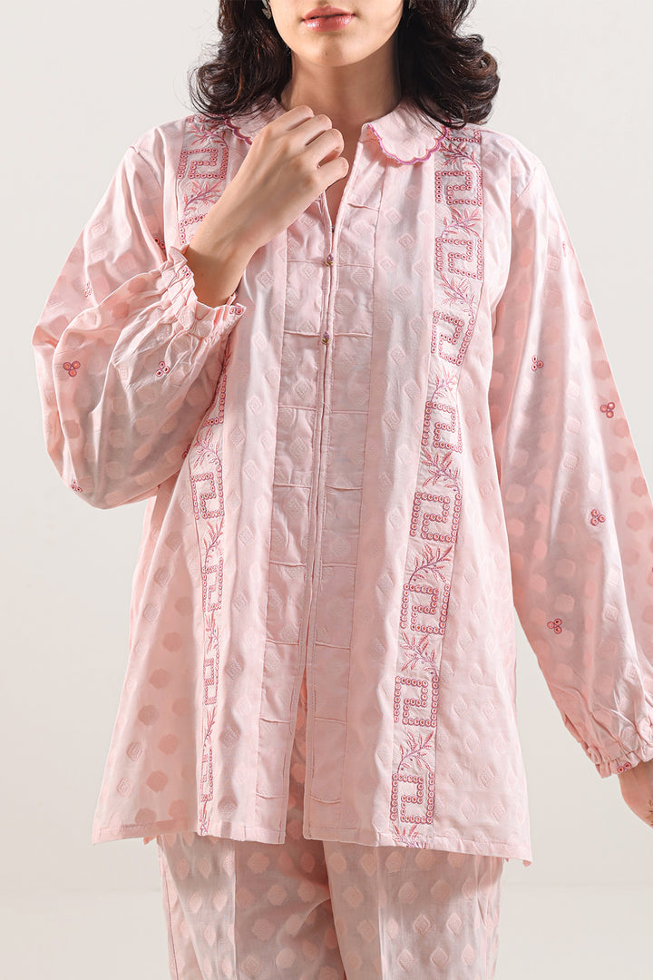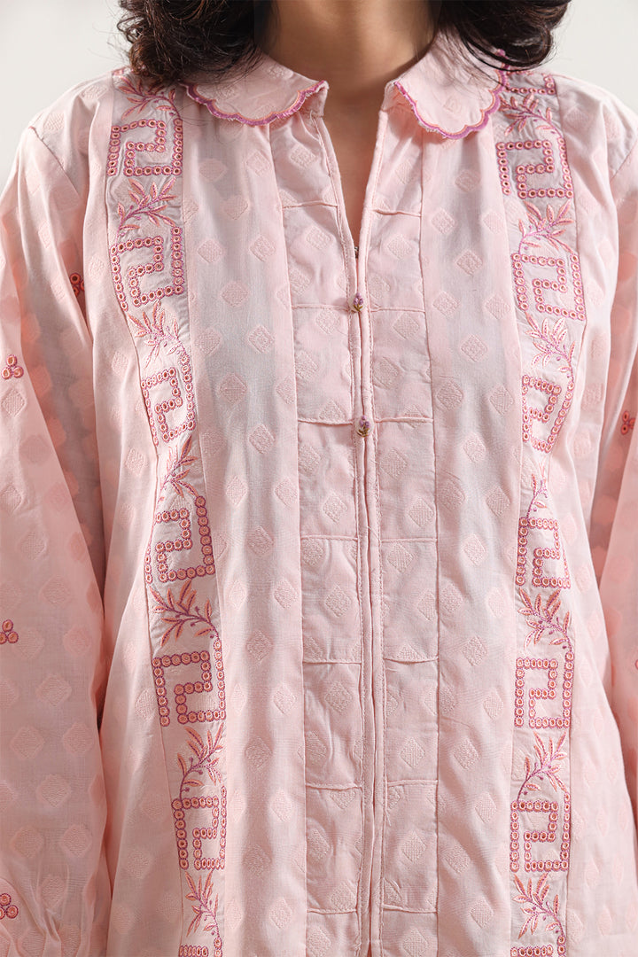 Ready To Wear Embroidered Cotton Jacquard Stitched Shirt.
