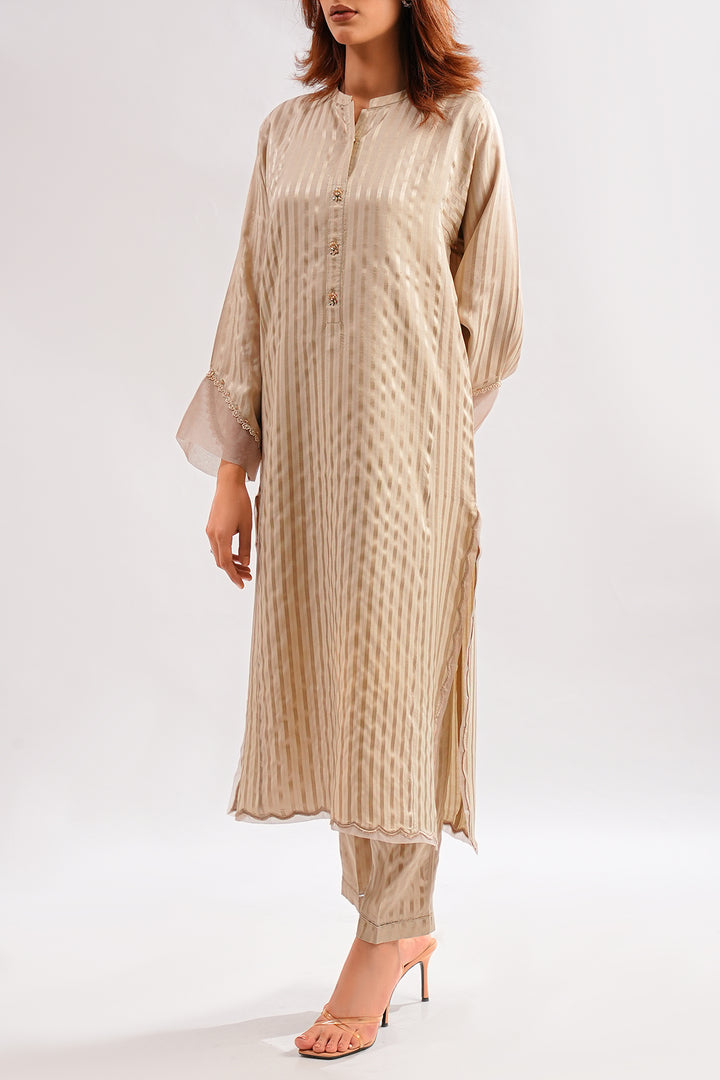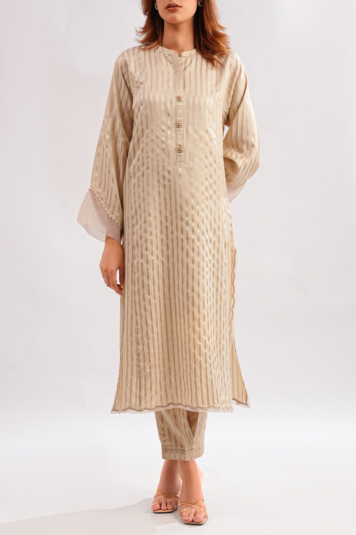 Step into elegance with this Lux Pret stitched 2-piece by Saya, made from shimmering zari mesuri fabric. The design blends contemporary tailoring with a festive feel, making it ideal for semi-formal events or evening wear. Shop now at Saya.pk—your go-to online fashion store in Pakistan.