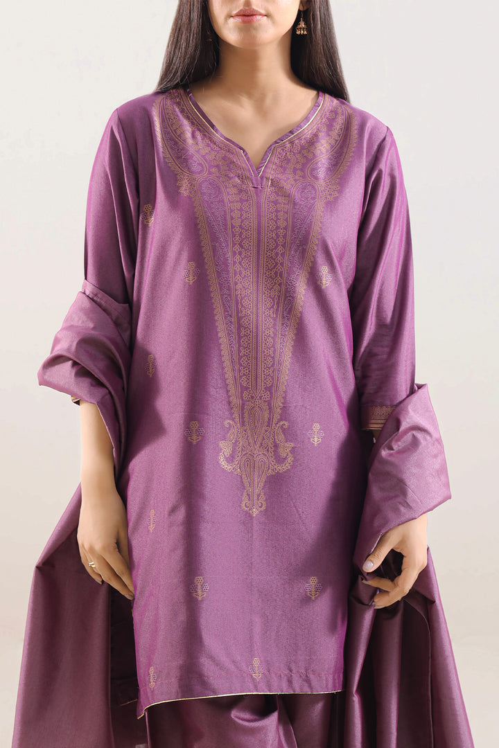 Step into elegance with the Luxury Pret Cotton Jacquard Stitched 3-Piece Set from Saya.pk. Made from premium cotton jacquard fabric, this set offers a perfect blend of comfort, durability, and sophistication. The set includes a beautifully designed shirt, an intricately embroidered waistcoat, and tailored trousers, making it ideal for weddings, festive events, or formal gatherings. The luxurious jacquard weave and delicate embroidery ensure you stand out in style. Ready-to-wear and designed for convenience, this 3-piece set is a timeless addition to your wardrobe.