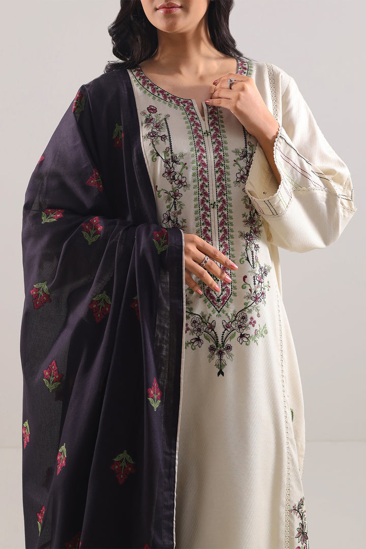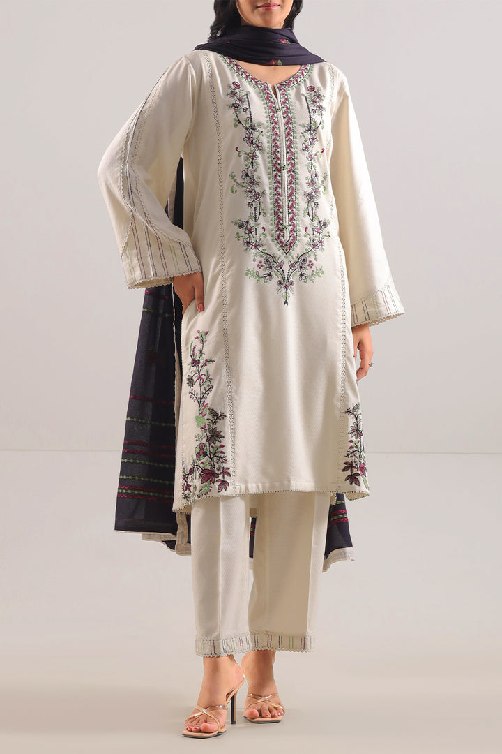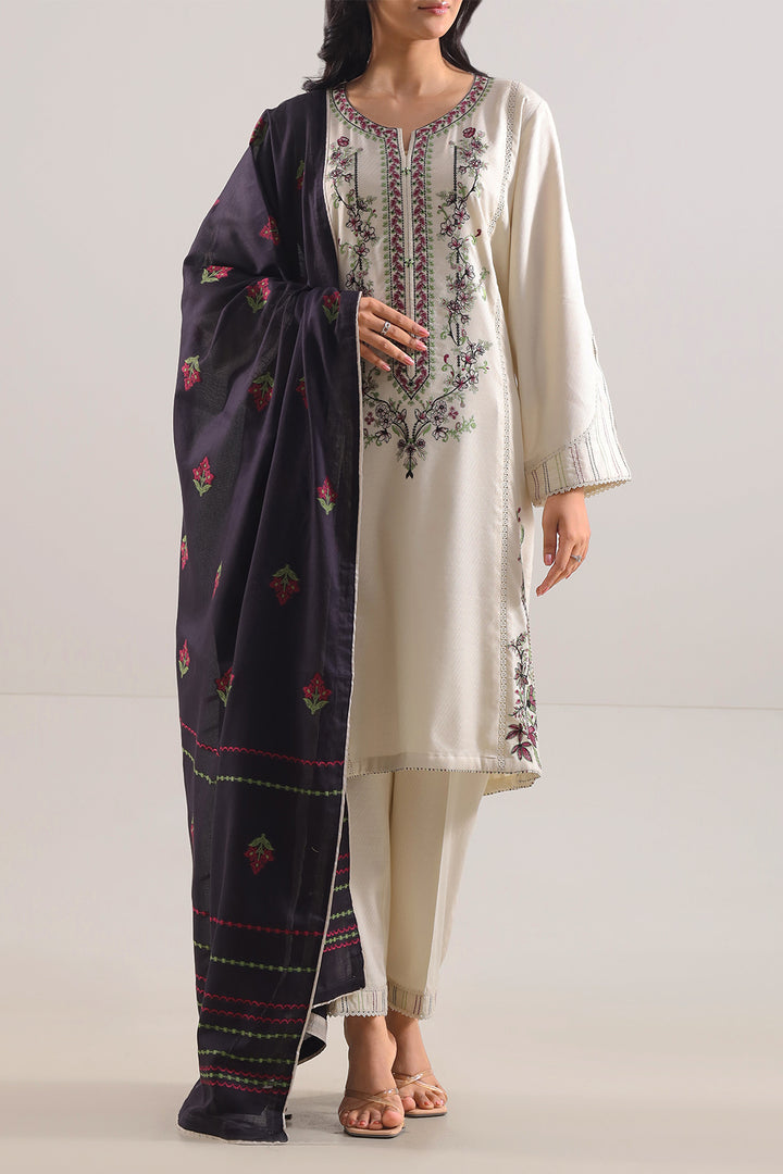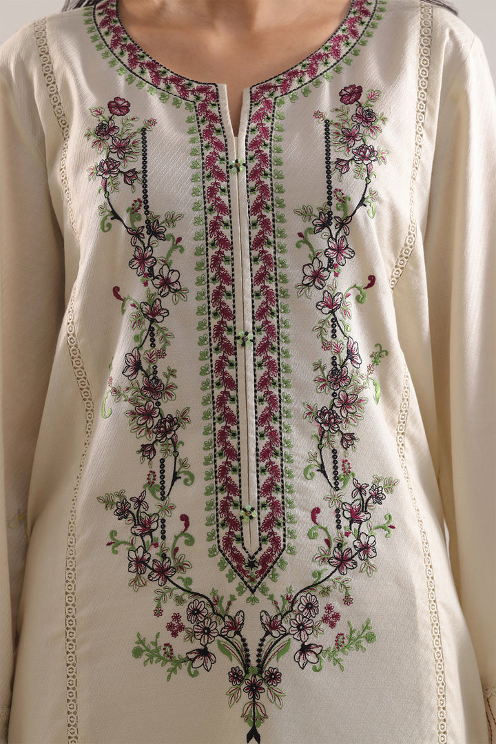 Understated Elegance Meets Festive Flair In This SAYA Luxury Pret Embroidered Cotton Jacquard Stitched 3-Piece In Soft Beige. The Premium Cotton Jacquard Fabric Boasts A Refined Texture That Captures Light Gently, While The Intricate Embroidery Lends Artistic Depth Without Detracting From The Neutral Palette. With The Shirt, Dupatta, And Trouser Harmoniously Designed To Complement One Another, This Ready-To-Wear Ensemble Offers A Polished Silhouette Right Out Of The Box. Flawless Stitching, Crisp Seams, And Thoughtful Detailing Ensure That The Set Maintains Its Structure With Grace. Perfect For Weddings, Festive Events, Or Elegant Day Occasions, It Provides A Balanced Blend Of Luxury, Wearability, And Subtle Sophistication.