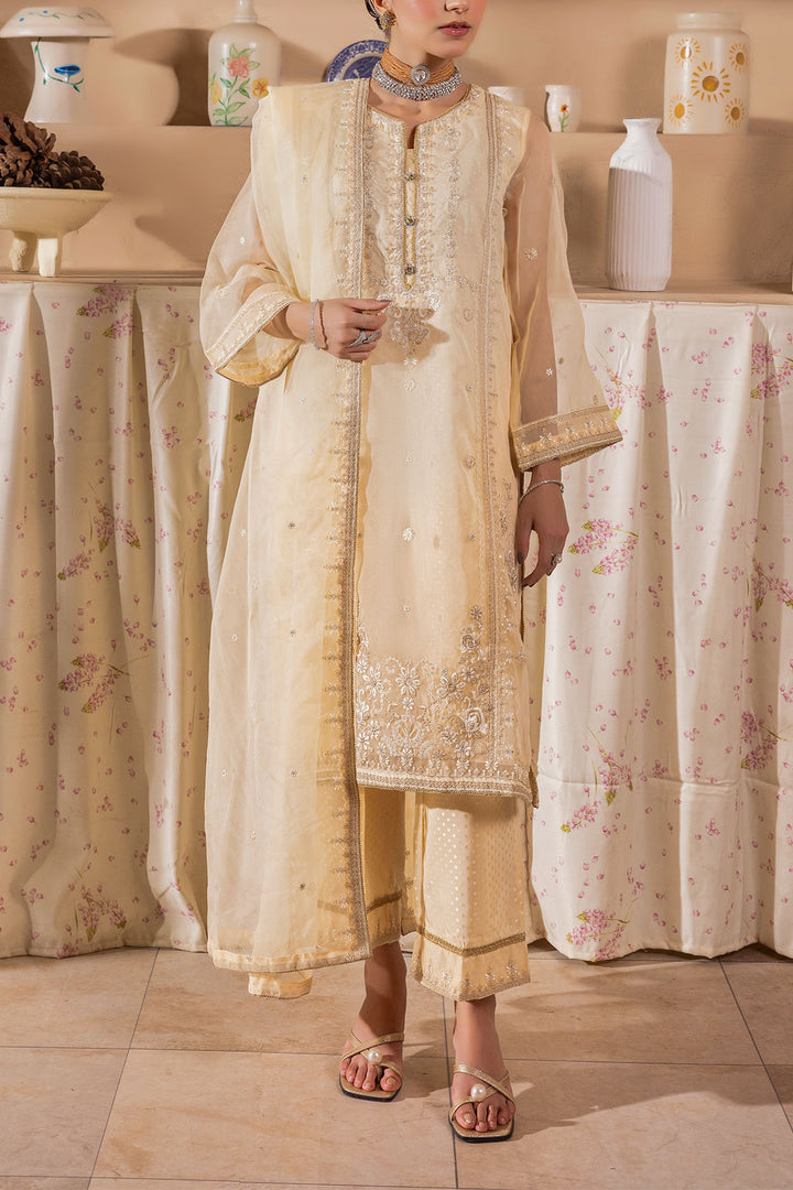 Refined and radiant, Luxury Pret Embroidered Self-Jacquard Stitched 3 Piece by Saya is the ideal pick for your next festive occasion. With a rich self-jacquard base, detailed embroidery, and a harmonized dupatta and trouser, this stitched set merges elegance with ease for formal gatherings.