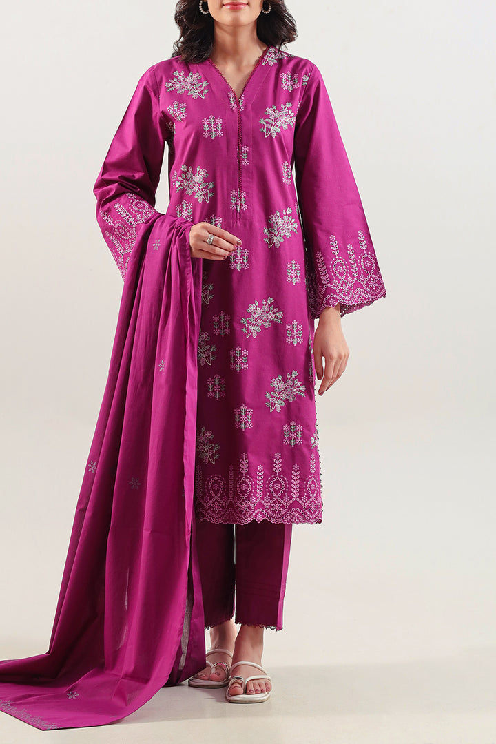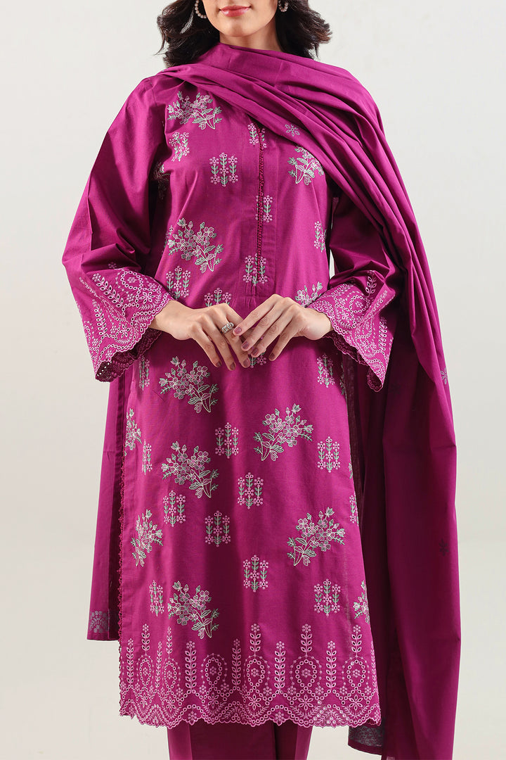 SAYA Luxury Pret Embroidered Slub Cotton 3-Piece Dresses You In A Refined Ensemble Made From Soft, Textured Slub Cotton That Offers Breathable Comfort And A Natural Drape. The Shirt Features Intricate Embroidery, While The Coordinated Dupatta And Dyed Trouser Complete A Polished Outfit — Ideal For Semi-Formal Gatherings, Office Wear, Or Stylish Everyday Elegance.