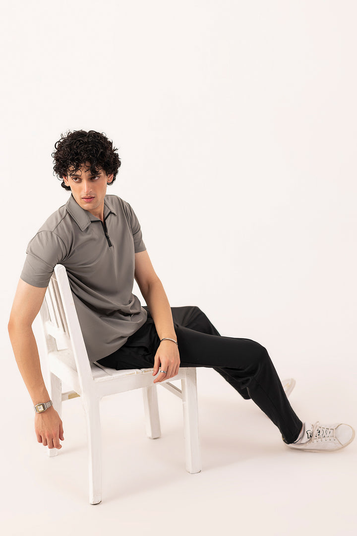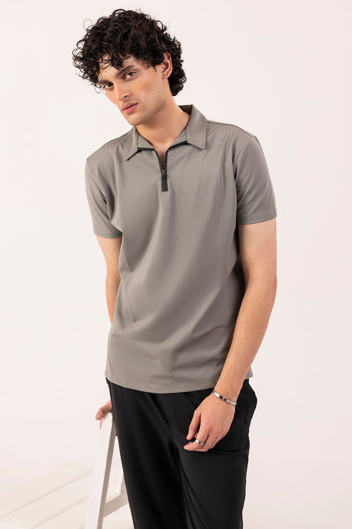 Step Into Contemporary Comfort With SAYA’s Polo Zip-Up Tee In Light Gray, Expertly Crafted From Premium Scuba Fabric Known For Its Smooth Texture, Stretch, And Structured Drape. The Fabric Offers Exceptional Flexibility, Wrinkle Resistance, And A Sleek Finish, Making It Perfect For Modern, On-The-Go Lifestyles. The Polo-Inspired Collar With A Sleek Front Zip Adds A Sporty Yet Refined Touch, While The Relaxed Fit Ensures Ease Of Movement. The Sophisticated Light Gray Tone Elevates Versatility—Ideal For Work, Travel, Or Casual Evenings. Experience A Perfect Blend Of Style, Comfort, And Innovation With This Statement Piece.