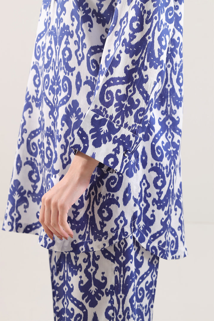 Printed Arabic Lawn Stitched 2‑Piece Set By SAYA Offers A Sublime Blend Of Elegance And Comfort. Crafted From Lightweight, Breathable Lawn Fabric — Known For Its Soft, Fine Weave That Keeps You Cool In Warm Climes. The Ethereal Print Features Delicate Arabic Motifs, Lending A Refined, Artistic Touch That Elevates The Outfit With Cultural Charm. This Ensemble Includes A Tailored Shirt And Matching Trouser, Each Designed For A Flattering Yet Relaxed Silhouette. The Shirt Has A Structured But Airy Cut, While The Trouser Falls In A Clean, Straight Line — Making The Set Versatile Enough For Daytime Gatherings, Casual Get‑Togethers, Or Semi‑Formal Events.