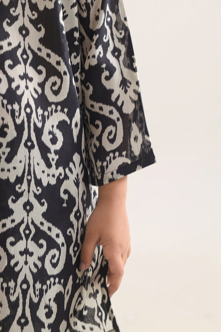 Introduce Your Little One To Stylish Comfort With This Set From SAYA, Crafted From Lightweight Lawn Fabric With A Delicate Arabic-Style Print. The Shirt Offers Soft Breathability And Ready-To-Wear Ease, While The Matching Trouser Is Tailored For Movement And Everyday Utility. Ideal For Playdates, Family Gatherings Or Festive Occasions.