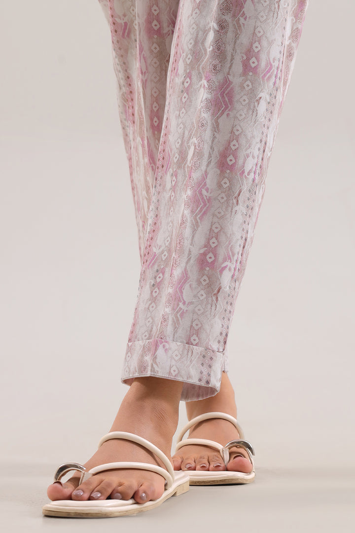 Crafted From Lightweight Cambric Fabric That Ensures Excellent Comfort And Breathability, These Pants Feature An Elegant All Over Print On A Soft Blue Base, Giving Visual Appeal Without Compromise. Designed With A Straight Leg Silhouette And A Neat Waistband, They Offer Smooth Movement And A Polished Finish Ideal For Casual Outings, Smart Daywear, Or Travel Looks. Perfectly Combining Fabric Quality, Print Detail, And Everyday Utility For Effortless Style.