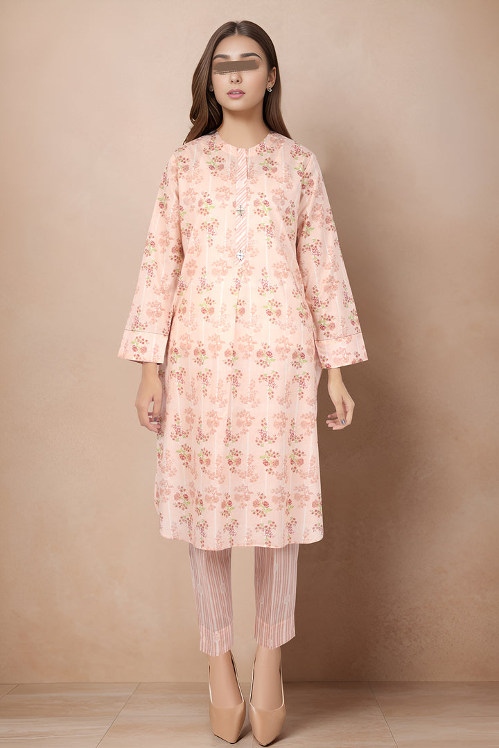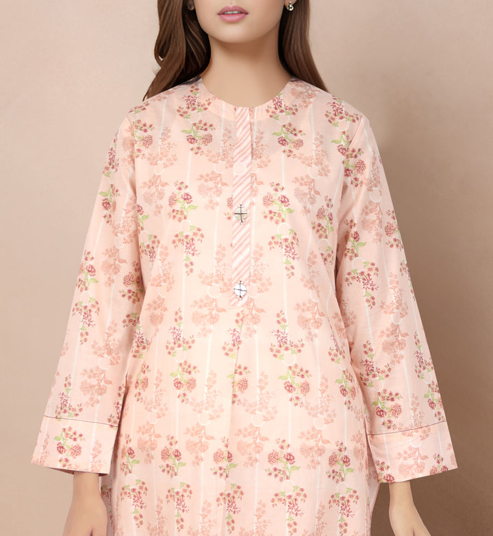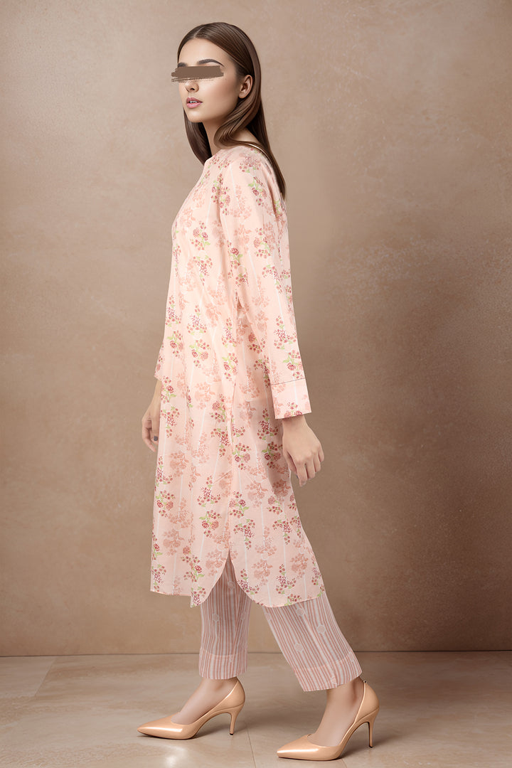 Introducing Saya's Printed Cambric Stitched Shirt, a ready-to-wear piece designed for both style and comfort. Crafted from premium cambric fabric, this shirt offers a soft touch and durability, making it suitable for various occasions. The elegant peach hue adds a touch of sophistication to your wardrobe