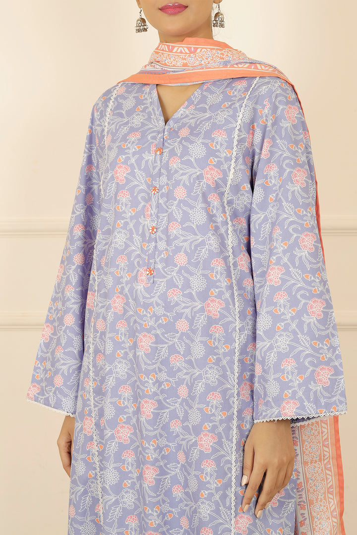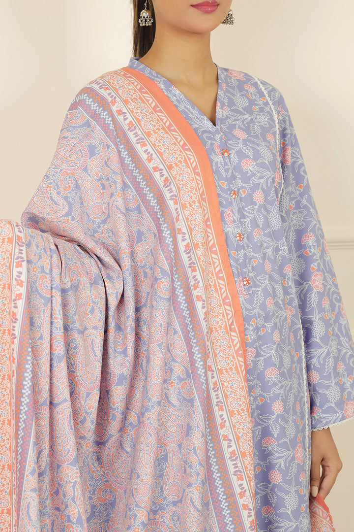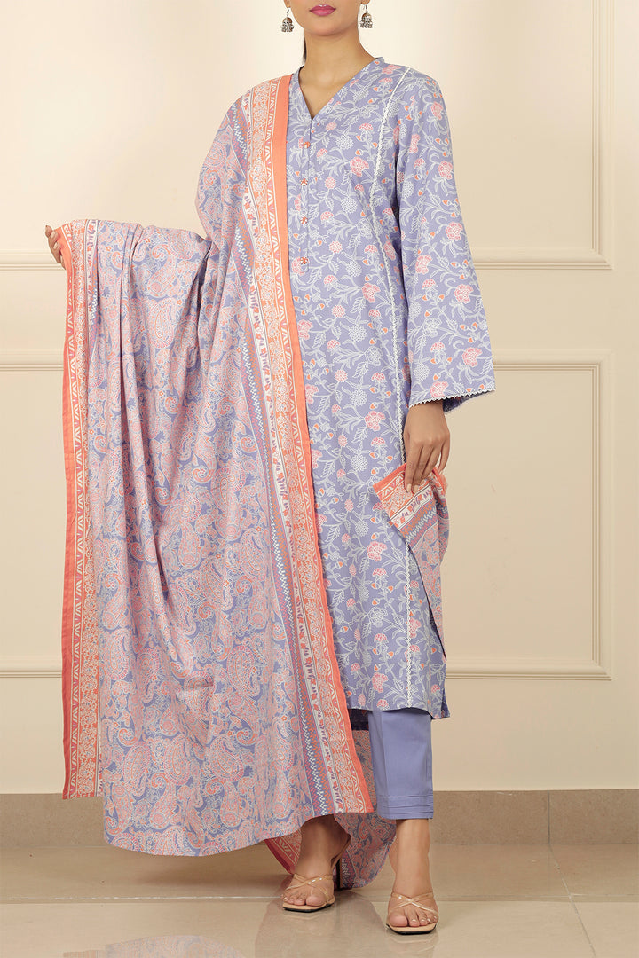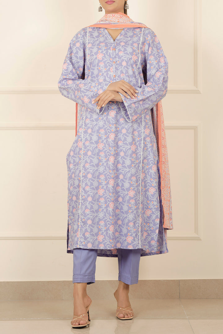 Upgrade your wardrobe with Saya's Printed Cotton Viscose Stitched 3-Piece, blending elegance with comfort. This ready-to-wear ensemble features a soft cotton viscose fabric, a beautifully printed shirt, a matching trouser, and a complementing dupatta—perfect for a refined look.