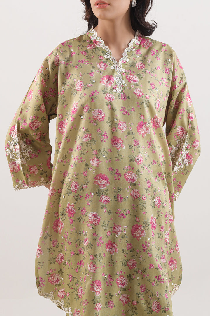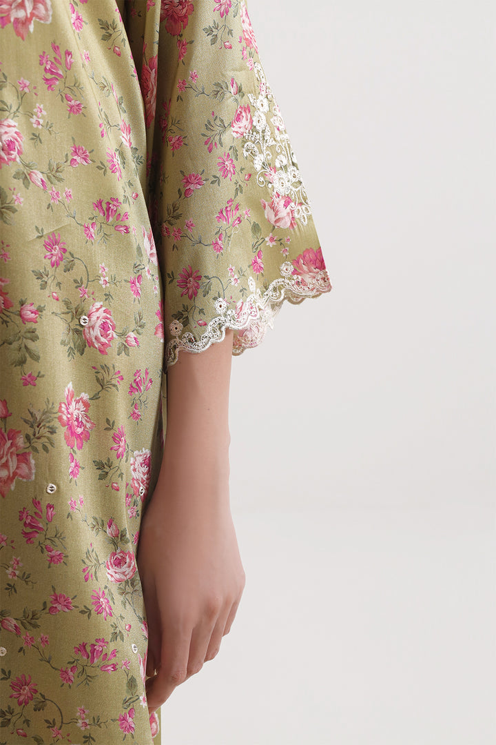 Ready To Wear Printed Embroidered Arabic Lawn Stitched Shirt.
