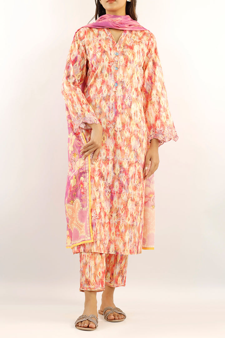 Elevate your wardrobe with the Printed Embroidered Cotton Jacquard Stitched 3-Piece. Made from premium cotton jacquard, this outfit boasts a beautiful blend of printed patterns and intricate embroidery, perfect for formal and semi-formal wear. The set includes a stylish shirt, matching trousers, and a complementing dupatta for a complete look.