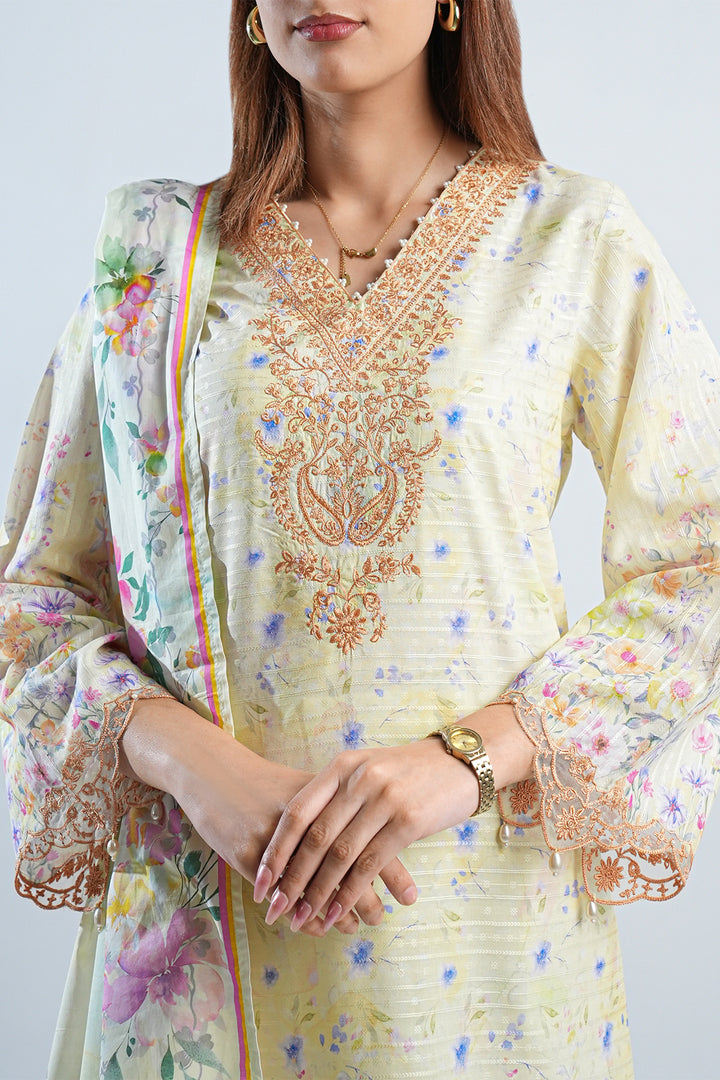 Elevate your seasonal wardrobe with this printed and embroidered cotton jacquard stitched shirt by Saya. Crafted for both elegance and comfort, the rich jacquard weave is adorned with delicate embroidery and subtle prints—ideal for festive wear or refined everyday looks.
