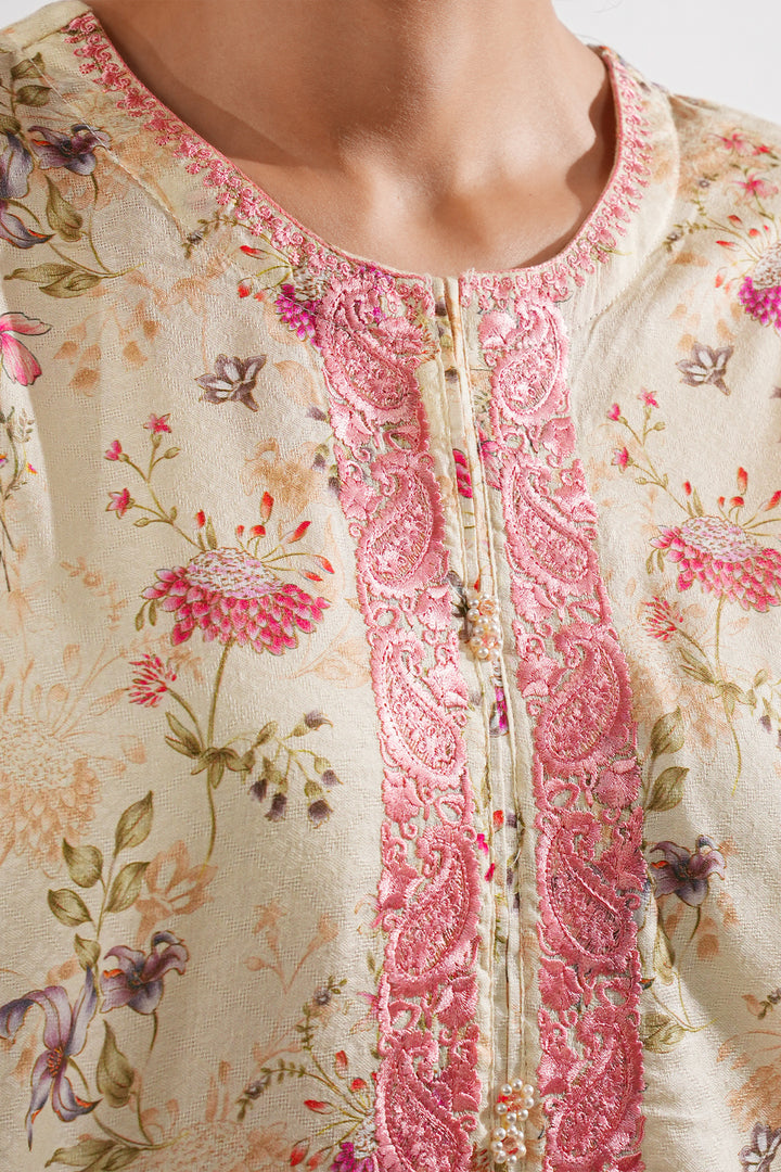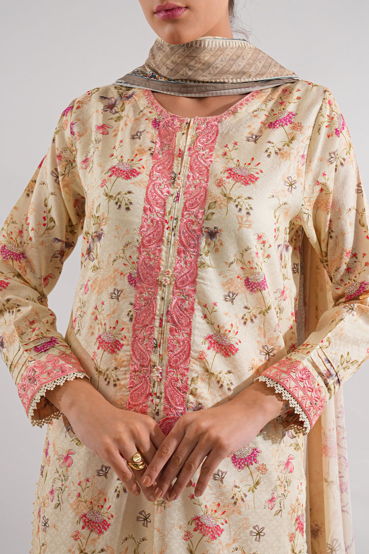 Add a refined touch to your wardrobe with this stitched 2-piece ensemble from Saya.pk. Made from premium self-jacquard fabric, the shirt features delicate embroidery and all-over print, paired with a flowy dupatta—ideal for graceful casual and semi-formal wear.