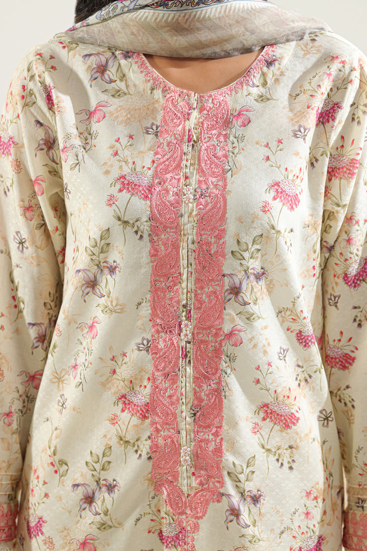 Printed Embroidered Self Jacquard Stitched 2 Piece (Shirt/Dupatta)