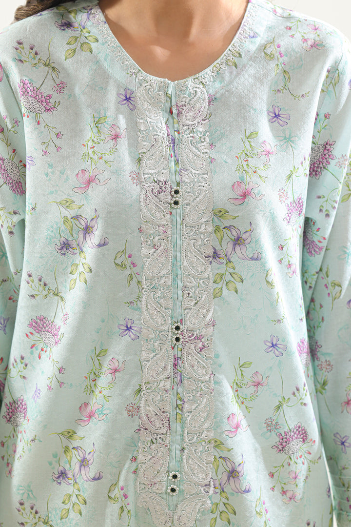 Bring Artful Elegance To Your Wardrobe With This Printed Embroidered Self-Jacquard Stitched 2-Piece Shirt And Dupatta Set By SAYA, Perfectly Crafted For Sophisticated Daywear. Made From Premium Self-Jacquard Fabric, The Shirt Features A Soft Textured Weave That Adds Depth And Dimension. A Striking Digital Print Is Enhanced With Delicate Embroidery On The Front, Blending Modern Design With Classic Detailing. The Matching Printed Dupatta Completes The Ensemble With Grace, Offering A Balanced And Refined Look. Ideal For Casual Gatherings, Office Wear, Or Semi-Formal Occasions, This Set Embodies SAYA’s Signature Combination Of Quality, Style, And Versatility.