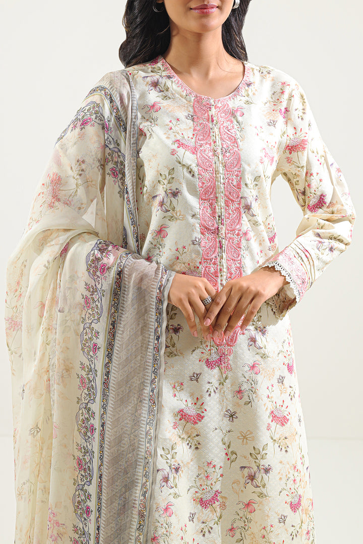 Upgrade your wardrobe with Saya’s ready-to-wear Printed Embroidered Self‑Jacquard Shirt. Made from premium self-jacquard fabric featuring vibrant print and delicate tonal embroidery, it offers structured elegance and breathable comfort. Perfect for casual meet-ups, festive gatherings, or semi-formal wear for the modern Pakistani woman.